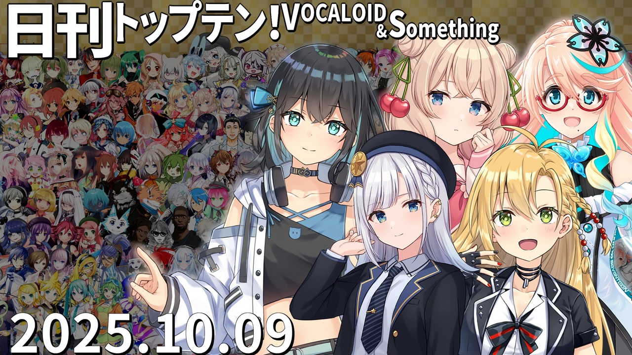 前日(10/8)←<a href="https://www.nicovideo.jp/watch/sm45536137" class="watch">sm45536137</a> <a href="https://www.nicovideo.jp/watch/sm45539265" class="watch">sm45539265</a>→翌日(10/10)<br>★毎号のTOP3をXでまとめて確認できます!<a href="https://tinyurl.com/4sur67rb" target="_blank" rel="noopener nofollow">https://tinyurl.com/4sur67rb</a><br><br>★チャプター<br>昨日1位<a href="#" class="seekTime" data-seekTime="0:00" onclick="seekNicoPlayer('#0:00'); return false;">#0:00</a> TOP10<a href="#" class="seekTime" data-seekTime="0:36" onclick="seekNicoPlayer('#0:36'); return false;">#0:36</a> 1年前<a href="#" class="seekTime" data-seekTime="2:56" onclick="seekNicoPlayer('#2:56'); return false;">#2:56</a> TOP3<a href="#" class="seekTime" data-seekTime="3:24" onclick="seekNicoPlayer('#3:24'); return false;">#3:24</a> 10年前<a href="#" class="seekTime" data-seekTime="4:55" onclick="seekNicoPlayer('#4:55'); return false;">#4:55</a> PICKUP<a href="#" class="seekTime" data-seekTime="5:23" onclick="seekNicoPlayer('#5:23'); return false;">#5:23</a> <br><br>★トップテン<br>10:<a href="https://www.nicovideo.jp/watch/sm45470637" class="watch">sm45470637</a> 9:<a href="https://www.nicovideo.jp/watch/sm45470348" class="watch">sm45470348</a> 8:<a href="https://www.nicovideo.jp/watch/sm45476643" class="watch">sm45476643</a> 7:<a href="https://www.nicovideo.jp/watch/sm45465167" class="watch">sm45465167</a> <br>6:<a href="https://www.nicovideo.jp/watch/sm45472740" class="watch">sm45472740</a> 5:<a href="https://www.nicovideo.jp/watch/sm45483695" class="watch">sm45483695</a> 4:<a href="https://www.nicovideo.jp/watch/sm45392492" class="watch">sm45392492</a> 3:<a href="https://www.nicovideo.jp/watch/sm45455709" class="watch">sm45455709</a> 2:<a href="https://www.nicovideo.jp/watch/sm45482157" class="watch">sm45482157</a> 1:<a href="https://www.nicovideo.jp/watch/sm45426911" class="watch">sm45426911</a> <br><br>★ピックアップ(B~Dは超新着枠)<br>B:<a href="https://www.nicovideo.jp/watch/sm45489656" class="watch">sm45489656</a> C:<a href="https://www.nicovideo.jp/watch/sm45404905" class="watch">sm45404905</a> D:<a href="https://www.nicovideo.jp/watch/sm45488626" class="watch">sm45488626</a> E:<a href="https://www.nicovideo.jp/watch/sm45487331" class="watch">sm45487331</a> F:<a href="https://www.nicovideo.jp/watch/sm45470258" class="watch">sm45470258</a> <br><br>★プレイバック <br>A(1年前):<a href="https://www.nicovideo.jp/watch/sm44195185" class="watch">sm44195185</a> 十(10年前):<a href="https://www.nicovideo.jp/watch/sm27331746" class="watch">sm27331746</a> 前日の第1位: <a href="https://www.nicovideo.jp/watch/sm45482931" class="watch">sm45482931</a>(彩澄しゅお・彩澄りりせ・弦巻マキ・宮舞モカ・桜乃そら)<br><br>☆集計対象:2025/10/2~9 5時投稿の作品(10/9 5時集計)<br>★計算式:再生×1+コメント×最大12+いいね!×21+マイリスト×15<br>☆プレイリスト:<u><a href="https://nikkantop10.hatenablog.com/entry/ar20251009" target="_blank" rel="noopener nofollow">https://nikkantop10.hatenablog.com/entry/ar20251009</a></u> 、 <a href="https://www.nicovideo.jp/mylist/49271984" target="_blank" rel="noopener">mylist/49271984</a> <br>★1年前トップテン:<a href="https://www.nicovideo.jp/watch/sm44199648" class="watch">sm44199648</a><br />★日刊トップテン動画一覧マイリスト:<a href="https://www.nicovideo.jp/mylist/47849908" target="_blank" rel="noopener">mylist/47849908</a><br>☆ルールや計算式の詳細:<a href="https://nikkantop10-sub.hatenablog.com/entry/top10_rule" target="_blank" rel="noopener nofollow">https://nikkantop10-sub.hatenablog.com/entry/top10_rule</a><br><span style="color: #262626;">★K!!te Playlist LINK!:<a href="https://kiite.jp/user/AIST_playlist_bot" target="_blank" rel="noopener nofollow">https://kiite.jp/user/AIST_playlist_bot</a><br>☆Twitter:<a href="https://twitter.com/VOCALO_NEWRANK" target="_blank" rel="noopener nofollow">https://twitter.com/VOCALO_NEWRANK</a><br>★Thread:<a href="https://www.threads.net/@lukanan_p" target="_blank" rel="noopener nofollow">https://www.threads.net/@lukanan_p</a></span><br><br><span style="color: #0000ff;"><strong>◆今後の動画投稿イベント情報</strong></span><br>2025/12/29~31 <strong>先端映像音楽表現投稿祭</strong> <a href="https://twipla.jp/events/678401" target="_blank" rel="noopener nofollow">https://twipla.jp/events/678401</a><br>2026/1/1~4 <strong>ボカロサビ投稿祭2026 </strong><a href="https://twipla.jp/events/705936" target="_blank" rel="noopener nofollow">https://twipla.jp/events/705936</a> ※既存曲は新規投稿で参加可<br>2026/1/10~12 <strong>ポストロック投稿祭 </strong><a href="https://twipla.jp/events/694939" target="_blank" rel="noopener nofollow">https://twipla.jp/events/694939</a>