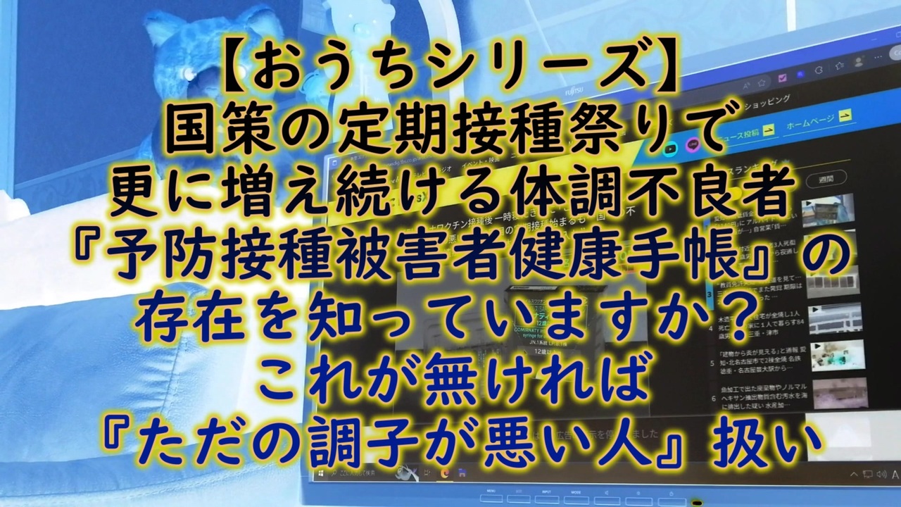 国策の定期接種が9回目を迎えるようです。<br>同時にワクチン後遺症に悩む患者も増加の一途を辿たどり<br>『予防接種被害者健康手帳』なるものが無いと<br>ただの調子が悪い人扱いだそうです...<br>国は打て打てと、でも体調不良者続出という矛盾<br>ますます政府と国民の隔たりが深くなるような気がしてなりません。