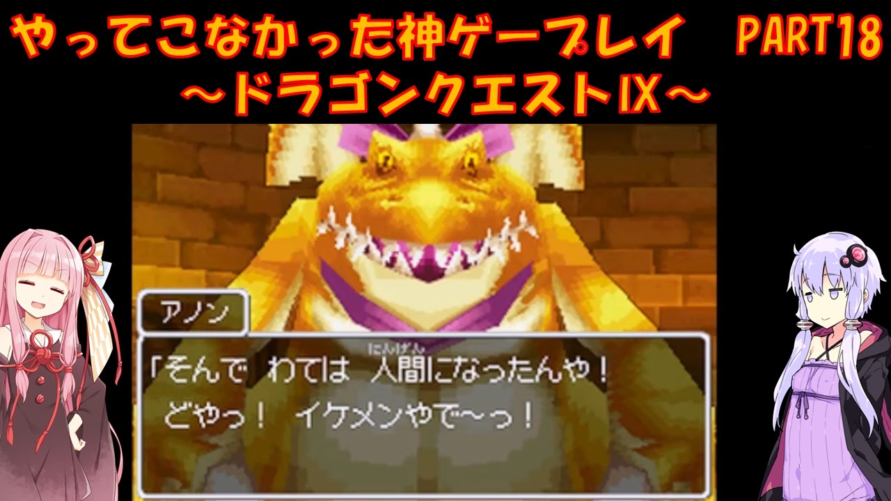 ニンテンドーDS ドラゴンクエストⅨをプレイ<br>ゆかりさんはメジャーじゃないゲームをやる俺カッケー族だったのでドラクエをやったことがありませんでした(DSのⅤ以外)<br><br>茜:なにを言ってるんやこのクソトカゲは?<br>ゆ:二足歩行できるな、人間!ヨシ!<br><br>PART1:<a href="https://www.nicovideo.jp/watch/sm45383595" target="_blank" rel="noopener nofollow">https://www.nicovideo.jp/watch/sm45383595</a><br><br>各DQシリーズ再生リスト<br><a href="https://garage.nicovideo.jp/niconico-garage/video/series/390298" target="_blank" rel="noopener nofollow">https://garage.nicovideo.jp/niconico-garage/video/series/390298</a><br><br>動画内で使用させていただいた素材<br>【イラスト】<br>結月ゆかり→ペテン師様:<a href="https://seiga.nicovideo.jp/seiga/im5494168" target="_blank" rel="noopener nofollow">https://seiga.nicovideo.jp/seiga/im5494168</a><br>琴葉茜→ユメのオワリ様:<a href="https://seiga.nicovideo.jp/seiga/im10706241" target="_blank" rel="noopener nofollow">https://seiga.nicovideo.jp/seiga/im10706241</a><br><br>【音声】<br>A.I.Voice:琴葉茜<br><a href="https://aivoice.jp/product/kotonoha/" target="_blank" rel="noopener nofollow">https://aivoice.jp/product/kotonoha/</a><br><br>A.I.Voice:結月ゆかり<br><a href="https://aivoice.jp/product/yukari/" target="_blank" rel="noopener nofollow">https://aivoice.jp/product/yukari/</a><br><br>【その他素材】<br><br>この動画で利用している株式会社スクウェア・エニックスを代表とする共同著作者が権利を所有する著作物及びスギヤマ工房有限会社が権利を所有する楽曲の転載・配布は禁止いたします。<br>© 2009 ARMOR PROJECT/BIRD STUDIO/LEVEL-5/SQUARE ENIX All Rights Reserved.<br>© SUGIYAMA KOBO<br>Ⓟ SUGIYAMA KOBO