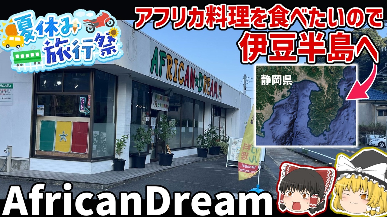 <span style="font-size: 18px;"><strong>アフリカ料理が食べた~い!</strong></span><br><br>てことで今回は首都圏から離れて<strong>伊豆半島</strong>へ!!!<br>静岡県河津町にある<span style="font-size: 16px;"><strong>「African Dream」</strong></span>へ行ってきた話+爬虫類を見にイズー&カワズーに行った話です。<br><br>普段の解説と違ってゆるゆるふわふわなレポ動画です<br><br><br>◆Twitter <a href="https://twitter.com/AfrikaanerMaris" target="_blank" rel="noopener nofollow">https://twitter.com/AfrikaanerMaris</a> <br>◆マイリスト <a href="https://www.nicovideo.jp/mylist/73354161" target="_blank" rel="noopener nofollow">https://www.nicovideo.jp/mylist/73354161</a><br>