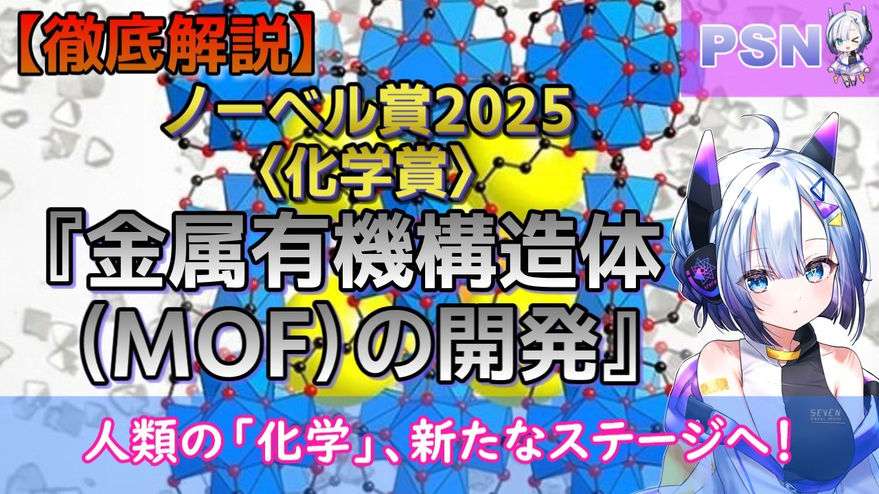<span style="color: #9900ff; font-size: 24px;"><strong>うおおおおおお!第二弾</strong></span><br><br>〈ノーベル化学賞(2025)〉<br>「金属有機構造体(MOF)の開発に対して」<br><br>『原著論文』※ピックアップ <br>"Progressive gas adsorption squeezing through the narrow channel of a soft porous crystal of [Co2(4,4′-bipyridine)3(NO3)4]"<br>([Co₂(4,4′-ビピリジン)₃(NO₃)₄]の柔軟性多孔質結晶の細い通路を通る漸進的なガス吸着圧縮)<br><a href="https://www.nature.com/articles/s43246-024-00609-x" target="_blank" rel="noopener nofollow">https://www.nature.com/articles/s43246-024-00609-x</a><br><br>『クレジット』<br>キャラクター:No.7(VOICEVOX)<br>他、ナレーション:麒ヶ島宗麟(VOICEVOX)<br>BGM:<a href="https://youtu.be/fItf7LyPelc?si=43igSdwXyKvAynp8" target="_blank" rel="noopener nofollow">https://youtu.be/fItf7LyPelc?si=43igSdwXyKvAynp8</a>