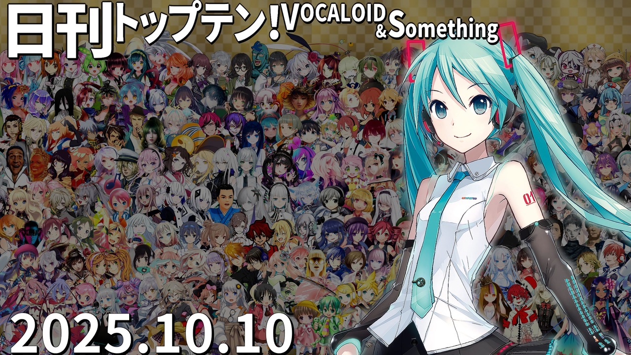 前日(10/9)←<a href="https://www.nicovideo.jp/watch/sm45537104" class="watch">sm45537104</a> <a href="https://www.nicovideo.jp/watch/sm45541821" class="watch">sm45541821</a>→翌日(10/11)<br>★ボカコレルーキー対象期間(2024年2月19日)以降で初紹介となる投稿者には「★NEW COMER!!★」マークを表記します。<br><br>★チャプター<br>昨日1位<a href="#" class="seekTime" data-seekTime="0:00" onclick="seekNicoPlayer('#0:00'); return false;">#0:00</a> TOP10<a href="#" class="seekTime" data-seekTime="0:36" onclick="seekNicoPlayer('#0:36'); return false;">#0:36</a> 1年前<a href="#" class="seekTime" data-seekTime="2:56" onclick="seekNicoPlayer('#2:56'); return false;">#2:56</a> TOP3<a href="#" class="seekTime" data-seekTime="3:24" onclick="seekNicoPlayer('#3:24'); return false;">#3:24</a> 10年前<a href="#" class="seekTime" data-seekTime="4:55" onclick="seekNicoPlayer('#4:55'); return false;">#4:55</a> PICKUP<a href="#" class="seekTime" data-seekTime="5:23" onclick="seekNicoPlayer('#5:23'); return false;">#5:23</a> <br><br>★トップテン<br>10:<a href="https://www.nicovideo.jp/watch/sm45476785" class="watch">sm45476785</a> 9:<a href="https://www.nicovideo.jp/watch/sm45480046" class="watch">sm45480046</a> 8:<a href="https://www.nicovideo.jp/watch/sm45467676" class="watch">sm45467676</a> 7:<a href="https://www.nicovideo.jp/watch/sm45493173" class="watch">sm45493173</a> <br>6:<a href="https://www.nicovideo.jp/watch/sm45460871" class="watch">sm45460871</a> 5:<a href="https://www.nicovideo.jp/watch/sm45489477" class="watch">sm45489477</a> 4:<a href="https://www.nicovideo.jp/watch/sm45489656" class="watch">sm45489656</a> 3:<a href="https://www.nicovideo.jp/watch/sm45484707" class="watch">sm45484707</a> 2:<a href="https://www.nicovideo.jp/watch/sm45404905" class="watch">sm45404905</a> 1:<a href="https://www.nicovideo.jp/watch/sm45486458" class="watch">sm45486458</a> <br><br>★ピックアップ(B~Dは超新着枠)<br>B:<a href="https://www.nicovideo.jp/watch/sm45488462" class="watch">sm45488462</a> C:<a href="https://www.nicovideo.jp/watch/sm45466590" class="watch">sm45466590</a> D:<a href="https://www.nicovideo.jp/watch/sm45491111" class="watch">sm45491111</a> E:<a href="https://www.nicovideo.jp/watch/sm45478400" class="watch">sm45478400</a> F:<a href="https://www.nicovideo.jp/watch/sm45473555" class="watch">sm45473555</a> G:<a href="https://www.nicovideo.jp/watch/sm45467925" class="watch">sm45467925</a> <br><br><br>★プレイバック <br>A(1年前):<a href="https://www.nicovideo.jp/watch/sm44200282" class="watch">sm44200282</a> 十(10年前):<a href="https://www.nicovideo.jp/watch/sm27335408" class="watch">sm27335408</a> 前日の第1位: <a href="https://www.nicovideo.jp/watch/sm45426911" class="watch">sm45426911</a>(初音ミク)<br><br>☆集計対象:2025/10/3~10 5時投稿の作品(10/10 5時集計)<br>★計算式:再生×1+コメント×最大12+いいね!×22+マイリスト×15<br>☆プレイリスト:<u><a href="https://nikkantop10.hatenablog.com/entry/ar20251010" target="_blank" rel="noopener nofollow">https://nikkantop10.hatenablog.com/entry/ar20251010</a></u> 、 <a href="https://www.nicovideo.jp/mylist/49271984" target="_blank" rel="noopener">mylist/49271984</a> <br>★1年前トップテン:<a href="https://www.nicovideo.jp/watch/sm44201143" class="watch">sm44201143</a><br />★日刊トップテン動画一覧マイリスト:<a href="https://www.nicovideo.jp/mylist/47849908" target="_blank" rel="noopener">mylist/47849908</a><br>☆ルールや計算式の詳細:<a href="https://nikkantop10-sub.hatenablog.com/entry/top10_rule" target="_blank" rel="noopener nofollow">https://nikkantop10-sub.hatenablog.com/entry/top10_rule</a><br><span style="color: #262626;">★K!!te Playlist LINK!:<a href="https://kiite.jp/user/AIST_playlist_bot" target="_blank" rel="noopener nofollow">https://kiite.jp/user/AIST_playlist_bot</a><br>☆Twitter:<a href="https://twitter.com/VOCALO_NEWRANK" target="_blank" rel="noopener nofollow">https://twitter.com/VOCALO_NEWRANK</a><br>★Thread:<a href="https://www.threads.net/@lukanan_p" target="_blank" rel="noopener nofollow">https://www.threads.net/@lukanan_p</a></span><br><br><span style="color: #0000ff;"><strong>◆今後の動画投稿イベント情報</strong></span><br>2025/12/29~31 <strong>先端映像音楽表現投稿祭</strong> <a href="https://twipla.jp/events/678401" target="_blank" rel="noopener nofollow">https://twipla.jp/events/678401</a><br>2026/1/1~4 <strong>ボカロサビ投稿祭2026 </strong><a href="https://twipla.jp/events/705936" target="_blank" rel="noopener nofollow">https://twipla.jp/events/705936</a> ※既存曲は新規投稿で参加可<br>2026/1/10~12 <strong>ポストロック投稿祭 </strong><a href="https://twipla.jp/events/694939" target="_blank" rel="noopener nofollow">https://twipla.jp/events/694939</a>