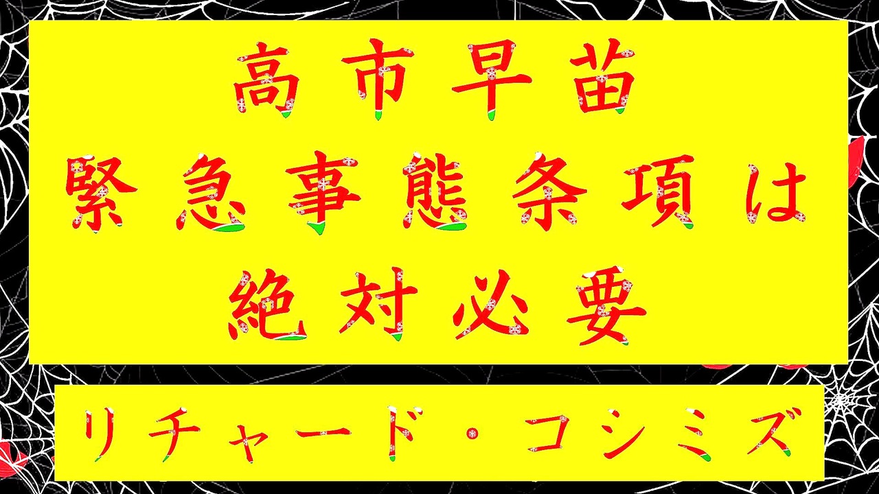 <span style="color: #ff0000;"><strong>◐『 高市早苗 』、『 緊急事態条項 』は『 絶対必要 』</strong></span><br><br> <span style="color: #38761d;"><strong>◐『「 リチャード・コシミズ・チャンネル 」</strong></span><span style="color: #ff0000;"><strong>⦅ ニコニコ チャンネル ⦆</strong></span><span style="color: #38761d;"><strong>』</strong></span><br> <span style="color: #0000ff;"><strong><a href="https://ch.nicovideo.jp/richardkoshimizu" target="_blank" rel="noopener nofollow">https://ch.nicovideo.jp/richardkoshimizu</a></strong></span><br><br><span style="color: #38761d;"><strong> ◐『「 リチャード・コシミズ 」</strong></span><span style="color: #ff0000;"><strong>「 ニコニコ生放送⦅ LIVE ⦆」</strong></span><span style="color: #38761d;"><strong>』</strong></span><br> <span style="color: #0000ff;"><strong><a href="https://www.nicovideo.jp/user/120930363/live_programs" target="_blank" rel="noopener nofollow">https://www.nicovideo.jp/user/120930363/live_programs</a></strong></span><br><br><span style="color: #38761d;"><strong> ◐『「 リチャード・コシミズ 講演会 」</strong></span><span style="color: #ff0000;"><strong>公式「 動画ギャラリー 」⦅ 最新動画 ⦆⦅ YouTube版 ⦆</strong></span><span style="color: #38761d;"><strong>』</strong></span><br> <span style="color: #0000ff;"><strong><a href="https://www.youtube.com/@richardkoshimizu-video-gallery" target="_blank" rel="noopener nofollow">https://www.youtube.com/@richardkoshimizu-video-gallery</a></strong></span><br><br>