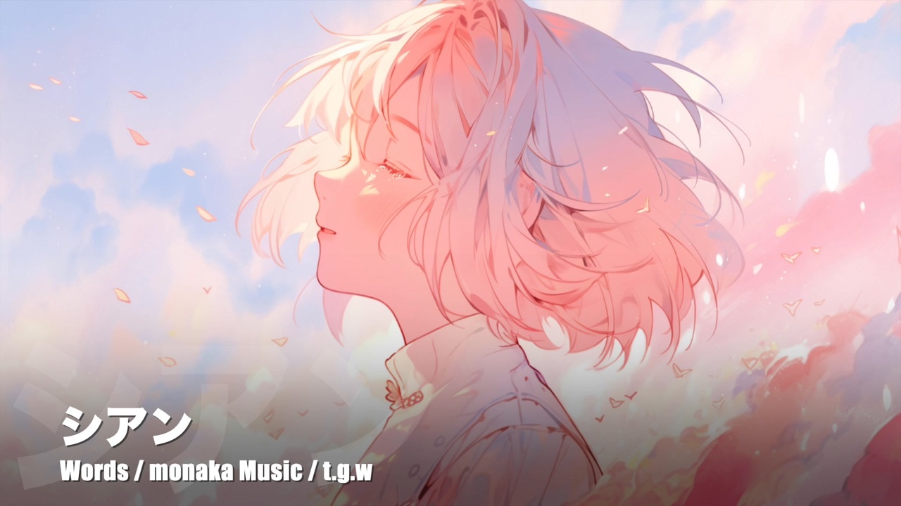 「シアン」<br><br>Vocal / GUMI<br><br>Words / monaka<br>Music / t.g.w<br>Illust / キリエルイ<br><br>カフェテラスから見えた<br>静かなきらめきが映す世界<br> <br>特別じゃない 何気なく過ぎる時間も<br>大切にしたい 目を閉じて<br> <br>ふわりと優しく吹く風が<br>連れてくる さざ波の音<br>私の心そっと解き癒していく<br>小さな幸せを感じながら見上げる空<br> <br>好きだった本に触れて<br>懐かしい気持ちを思い出そう<br> <br>失くしてないよ ほんの少し忘れただけ<br>あの日の声が聴こえたら<br> <br>静かに胸を染める色は<br>穏やかな澄み渡るシアン<br>私の日々をずっと見守り続けてた<br>安らぎに委ねたこの瞬間を大事にして<br> <br>ふわりと優しく吹く風が<br>連れてくる さざ波の音<br>私の心そっと解き癒していく<br>小さな幸せを感じながら見上げる空<br><br>----------------------------------------------------------<br><br>M3-2025秋の新譜「Cyan」に収録される楽曲です。<br><a href="https://x.com/paruparu_tgw" target="_blank" rel="noopener nofollow">https://x.com/paruparu_tgw</a><br>