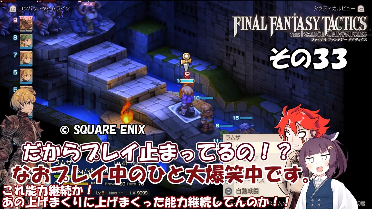 この動画はスチーム版ファイナルファンタジータクティクス イヴァリースクロニクルズの実況動画です。<br><br><br>難易度:タクティカル<br><br>※そのうち縛る縛り内容。<br>①ラムザくん 見習い戦士固定(まだいけてる)<br>②ネコ耳 斧or両手武器装備(両手持ちでもOK)<br>③ドラムカン 弓・ボウガン・銃装備<br>④きりたんです 武器攻撃禁止(たまに忘れる)<br>⑤あいちゃん 盾装備orサムラァイ<br><br><a href="https://www.nicovideo.jp/watch/sm45536522" class="watch">sm45536522</a> ← 前 次 → そのうち<br>マイリスト →<a href="https://www.nicovideo.jp/mylist/72149077" target="_blank" rel="noopener">mylist/72149077</a><br>その1リスト →<a href="https://www.nicovideo.jp/mylist/58364125" target="_blank" rel="noopener">mylist/58364125</a> <br><br>VOICEVOX:春日部つむぎ(ネコ耳) 玄野武宏(ラムザ・ベオルブ) 中部つるぎ(アグリアス様)<br> 青山龍星(ドラムカン) 東北きりたん(東北きりたん)<br> あいちゃん(中国うさぎ(立ち絵:akihiyo様作 立ち中国うさぎ素材 <a href="https://seiga.nicovideo.jp/seiga/im11211212" target="_blank" rel="noopener">im11211212</a>))<br>Voiceroid:東北きりたん(立ち絵:このりEX様作 東北きりたん立ち絵素材5 <a href="https://seiga.nicovideo.jp/seiga/im10819054" target="_blank" rel="noopener">im10819054</a>)<br><br>© SQUARE ENIX<br>