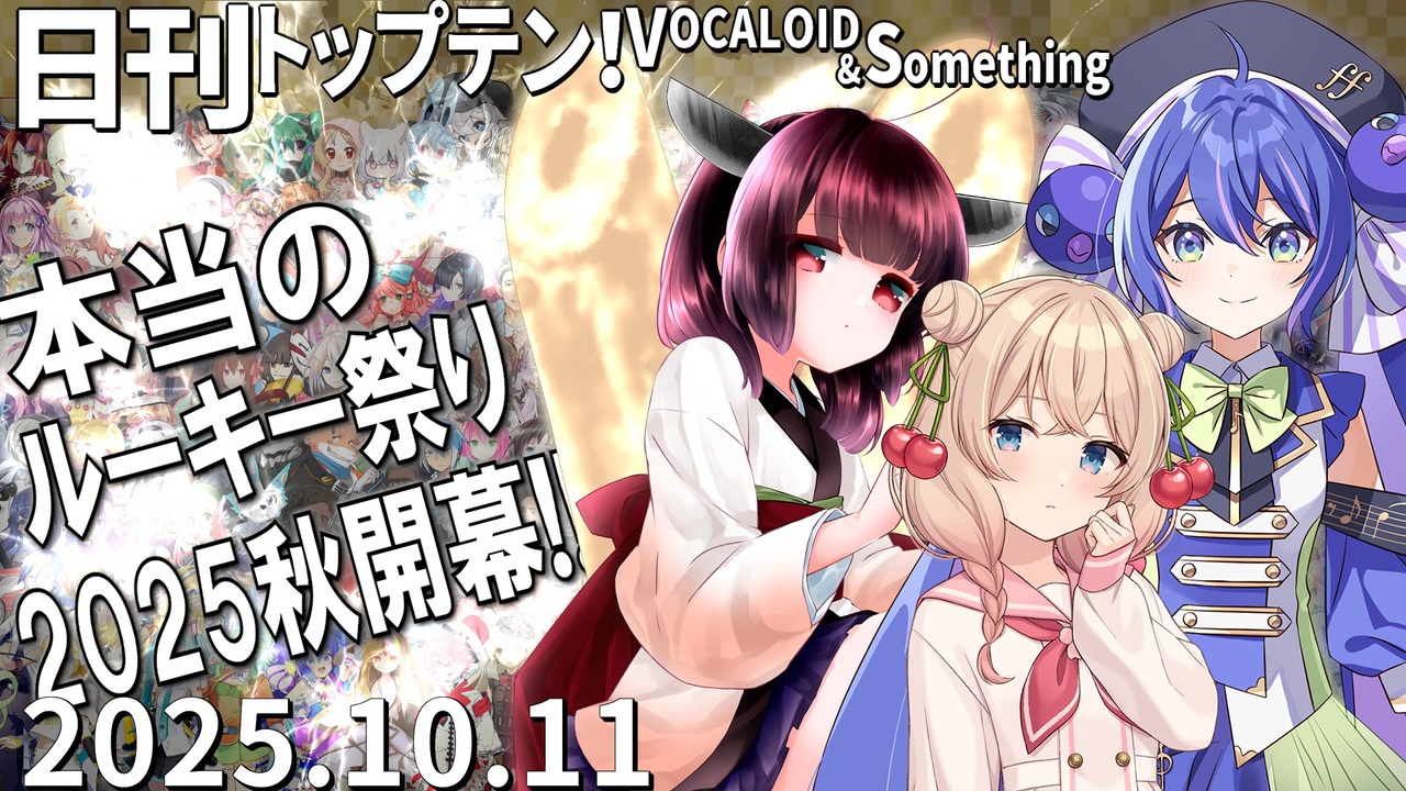 前日(10/10)←<a href="https://www.nicovideo.jp/watch/sm45539265" class="watch">sm45539265</a> <a href="https://www.nicovideo.jp/watch/sm45542367" class="watch">sm45542367</a>→翌日(10/12)<br>★Mixi2にもいます。<a href="https://mixi.social/@LUKANAN_P" target="_blank" rel="noopener nofollow">https://mixi.social/@LUKANAN_P</a><br><br>★チャプター<br>昨日1位<a href="#" class="seekTime" data-seekTime="0:00" onclick="seekNicoPlayer('#0:00'); return false;">#0:00</a> TOP10<a href="#" class="seekTime" data-seekTime="0:36" onclick="seekNicoPlayer('#0:36'); return false;">#0:36</a> 1年前<a href="#" class="seekTime" data-seekTime="2:56" onclick="seekNicoPlayer('#2:56'); return false;">#2:56</a> TOP3<a href="#" class="seekTime" data-seekTime="3:24" onclick="seekNicoPlayer('#3:24'); return false;">#3:24</a> 10年前<a href="#" class="seekTime" data-seekTime="4:55" onclick="seekNicoPlayer('#4:55'); return false;">#4:55</a> 超新着PICKUP<a href="#" class="seekTime" data-seekTime="5:23" onclick="seekNicoPlayer('#5:23'); return false;">#5:23</a> 通常PICKUP<a href="#" class="seekTime" data-seekTime="10:10" onclick="seekNicoPlayer('#10:10'); return false;">#10:10</a> <br><br>★トップテン<br>10:<a href="https://www.nicovideo.jp/watch/sm45492565" class="watch">sm45492565</a> 9:<a href="https://www.nicovideo.jp/watch/sm45481819" class="watch">sm45481819</a> 8:<a href="https://www.nicovideo.jp/watch/sm45494143" class="watch">sm45494143</a> 7:<a href="https://www.nicovideo.jp/watch/sm45497006" class="watch">sm45497006</a> <br>6:<a href="https://www.nicovideo.jp/watch/sm45497331" class="watch">sm45497331</a> 5:<a href="https://www.nicovideo.jp/watch/sm45493804" class="watch">sm45493804</a> 4:<a href="https://www.nicovideo.jp/watch/so45463335" class="watch">so45463335</a> 3:<a href="https://www.nicovideo.jp/watch/sm45495302" class="watch">sm45495302</a> 2:<a href="https://www.nicovideo.jp/watch/sm45493496" class="watch">sm45493496</a> 1:<a href="https://www.nicovideo.jp/watch/sm45493410" class="watch">sm45493410</a> <br><br>★ピックアップ(B~Oは超新着枠)<br>B:<a href="https://www.nicovideo.jp/watch/sm45496406" class="watch">sm45496406</a> C:<a href="https://www.nicovideo.jp/watch/sm45488636" class="watch">sm45488636</a> D:<a href="https://www.nicovideo.jp/watch/sm45454729" class="watch">sm45454729</a> E:<a href="https://www.nicovideo.jp/watch/sm45490515" class="watch">sm45490515</a> F:<a href="https://www.nicovideo.jp/watch/sm45496245" class="watch">sm45496245</a> G:<a href="https://www.nicovideo.jp/watch/sm45481095" class="watch">sm45481095</a> <br>H:<a href="https://www.nicovideo.jp/watch/sm45467565" class="watch">sm45467565</a> I:<a href="https://www.nicovideo.jp/watch/sm45497220" class="watch">sm45497220</a> J:<a href="https://www.nicovideo.jp/watch/sm45495008" class="watch">sm45495008</a> K:<a href="https://www.nicovideo.jp/watch/sm45496852" class="watch">sm45496852</a> L:<a href="https://www.nicovideo.jp/watch/sm45484966" class="watch">sm45484966</a> M:<a href="https://www.nicovideo.jp/watch/sm45484932" class="watch">sm45484932</a> <br>N:<a href="https://www.nicovideo.jp/watch/sm45477799" class="watch">sm45477799</a> O:<a href="https://www.nicovideo.jp/watch/sm45493871" class="watch">sm45493871</a> P:<a href="https://www.nicovideo.jp/watch/sm45490298" class="watch">sm45490298</a> Q:<a href="https://www.nicovideo.jp/watch/sm45490119" class="watch">sm45490119</a> R:<a href="https://www.nicovideo.jp/watch/sm45474759" class="watch">sm45474759</a> <br><br>★プレイバック <br>A(1年前):<a href="https://www.nicovideo.jp/watch/sm44200731" class="watch">sm44200731</a> 十(10年前):<a href="https://www.nicovideo.jp/watch/sm27297102" class="watch">sm27297102</a> 前日の第1位: <a href="https://www.nicovideo.jp/watch/sm45486458" class="watch">sm45486458</a>(彩澄しゅお・音街ウナ・東北きりたん)<br><br>☆集計対象:2025/10/4~11 5時投稿の作品(10/11 5時集計)<br>★計算式:再生×1+コメント×最大12+いいね!×11+マイリスト×10<br>☆プレイリスト:<u><a href="https://nikkantop10.hatenablog.com/entry/ar20251011" target="_blank" rel="noopener nofollow">https://nikkantop10.hatenablog.com/entry/ar20251011</a></u> 、 <a href="https://www.nicovideo.jp/mylist/49271984" target="_blank" rel="noopener">mylist/49271984</a> <br>★1年前トップテン:<a href="https://www.nicovideo.jp/watch/sm44207745" class="watch">sm44207745</a><br />★日刊トップテン動画一覧マイリスト:<a href="https://www.nicovideo.jp/mylist/47849908" target="_blank" rel="noopener">mylist/47849908</a><br>☆ルールや計算式の詳細:<a href="https://nikkantop10-sub.hatenablog.com/entry/top10_rule" target="_blank" rel="noopener nofollow">https://nikkantop10-sub.hatenablog.com/entry/top10_rule</a><br><span style="color: #262626;">★K!!te Playlist LINK!:<a href="https://kiite.jp/user/AIST_playlist_bot" target="_blank" rel="noopener nofollow">https://kiite.jp/user/AIST_playlist_bot</a><br>☆Twitter:<a href="https://twitter.com/VOCALO_NEWRANK" target="_blank" rel="noopener nofollow">https://twitter.com/VOCALO_NEWRANK</a><br>★Thread:<a href="https://www.threads.net/@lukanan_p" target="_blank" rel="noopener nofollow">https://www.threads.net/@lukanan_p</a></span><br><br><span style="color: #0000ff;"><strong>◆今後の動画投稿イベント情報</strong></span><br>2025/12/29~31 <strong>先端映像音楽表現投稿祭</strong> <a href="https://twipla.jp/events/678401" target="_blank" rel="noopener nofollow">https://twipla.jp/events/678401</a><br>2026/1/1~4 <strong>ボカロサビ投稿祭2026 </strong><a href="https://twipla.jp/events/705936" target="_blank" rel="noopener nofollow">https://twipla.jp/events/705936</a> ※既存曲は新規投稿で参加可<br>2026/1/10~12 <strong>ポストロック投稿祭 </strong><a href="https://twipla.jp/events/694939" target="_blank" rel="noopener nofollow">https://twipla.jp/events/694939</a>