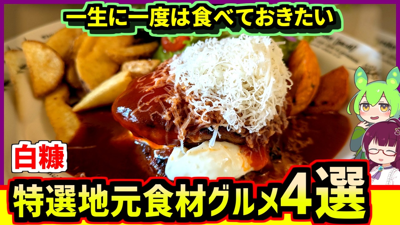 食の町 白糠には一生に一度は食べておきたい<br>地元食材をふんだんに使った絶品グルメがあります<br><br>そんな美味しい地元グルメが食べられる店を4つ紹介<br><br>アズハウス:<a href="https://www.town.shiranuka.lg.jp/section/keizai/nfml6300000016c8.html" target="_blank" rel="noopener nofollow">https://www.town.shiranuka.lg.jp/section/keizai/nfml6300000016c8.html</a> <br><br>白糠おでん:<a href="https://www.facebook.com/profile.php?id=61579787993614" target="_blank" rel="noopener nofollow">https://www.facebook.com/profile.php?id=61579787993614</a> <br><br>はまなす:<a href="https://restaurant-hamanasu.com" target="_blank" rel="noopener nofollow">https://restaurant-hamanasu.com</a> <a href="https://www.youtube.com/watch?v=O6hVxUnMa58" target="_blank" rel="noopener nofollow">https://www.youtube.com/watch?v=O6hVxUnMa58</a> <br><br>クオーレ:<a href="https://charomen-cuore.com" target="_blank" rel="noopener nofollow">https://charomen-cuore.com</a><br><br><br> ●音声ソフト<br>VOICEVOX:ずんだもん <br>薇タテハ@MYCOEIROINK<br><br><br>オリキャラである「恋結シラリカ」の立ち絵は<br>おき=サン(@ninja_oki)に制作していただきました<br>タツジン!<br><br><br>●X<br>@acerola_vitamin<br><br>●ブルースカイ<br>@pighimarimo.bsky.social<br><br /><span style="color: #ff0000; font-size: 24px;"><strong>釧路を紹介するブログ始めました</strong></span>:<a href="https://946de2100.com" target="_blank" rel="noopener nofollow">https://946de2100.com</a><br><br><span style="color: #ff0000; font-size: 16px;"><strong>●おススメ動画:</strong></span><span style="color: #ff0000; font-size: 18px;"><strong>【歴史解説】かつて 釧路を支配していたのは佐賀だった ~釧路元町の始まりと佐野孫右衛門の盛衰~</strong></span><br><br><a href="https://www.nicovideo.jp/watch/sm44267722" class="watch">sm44267722</a><br><br><br><span style="color: #ff0000; font-size: 18px;"><strong>●YouTubeチャンネルも登録よろしくお願いします</strong></span><br><strong>釧路チャンネル <a href="https://www.youtube.com/@znd-kaisetu" target="_blank" rel="noopener nofollow">https://www.youtube.com/@znd-kaisetu</a></strong><br>恋結シラリカソロチャンネル <a href="https://www.youtube.com/@enmusubi-shirarika" target="_blank" rel="noopener nofollow">https://www.youtube.com/@enmusubi-shirarika</a><br><br><br>ほしいものリスト <a href="https://www.amazon.jp/hz/wishlist/ls/2OUUB1JQSRUWG?ref_=wl_share" target="_blank" rel="noopener nofollow">https://www.amazon.jp/hz/wishlist/ls/2OUUB1JQSRUWG?ref_=wl_share</a><br>クリエイターサポート<a href="https://creator-support.nicovideo.jp/registration/116665199" target="_blank" rel="noopener nofollow">https://creator-support.nicovideo.jp/registration/116665199</a>