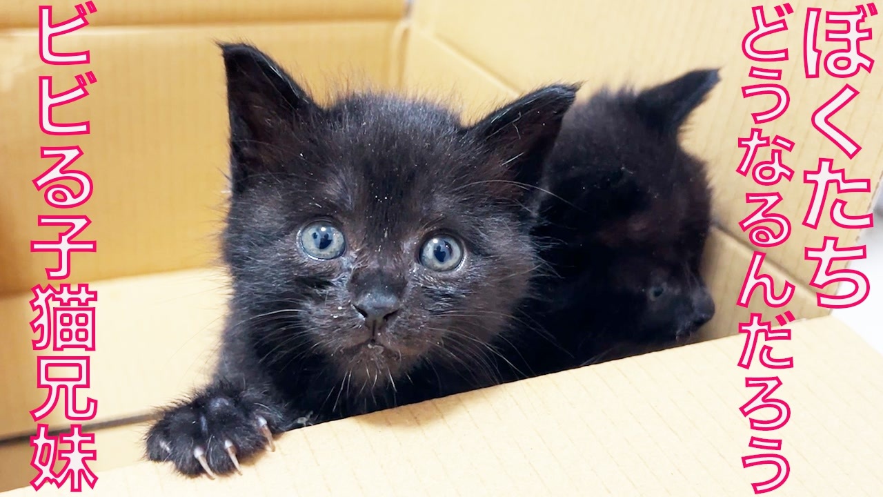 黒い保護子猫兄妹、初の珍獣にビビる 4:46