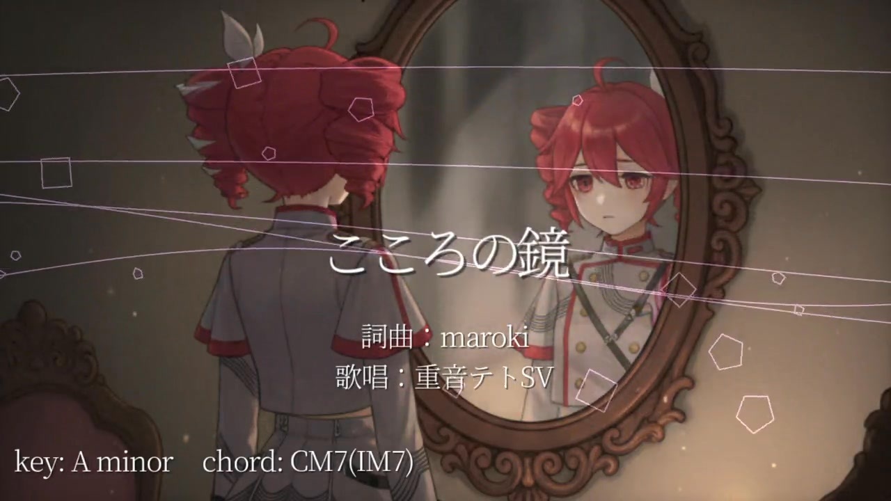 ■小室進行ボカロ曲投稿祭2025秋 に参加いたします!<br>■正直ね、小室進行のこと舐めてました。6451で何が面白いのって。でも小室進行の真髄は転調が自由自在なところなんですね!!<br>■というわけでAメロは小室進行を小室進行させてみました!(Aminor→Fminor→Gminor→Cminor) その他も全編小室進行です!<br><br>(歌詞)<br><br>どこかにあるの?<br>きみの心を映す鏡があれば<br>これほどまで<br>身を焦がさなくていいのに…<br>だけど、そこにはきっと<br>映ってしまうの<br>嫉妬に歪む<br>わたしの真実の顔まで<br><br>きみの前では<br>お行儀よく振る舞える<br>汚らわしい、モラルのない<br>懸想を隠しているから<br>きみもそう在ってよ、と<br>希ってしまうの<br>綺麗な顔が<br>羊の皮であってほしくて<br><br>もう、耐えられないよ<br>きみの真っ直ぐな<br>眩しい笑顔に<br><br>心の鏡に映したい<br>きみの本当を映したい<br>できれば醜くあってよ<br>腰が引けるくらいにさ…<br>「わたしを貪りたい」<br>くらい言ってくれないと<br>釣り合わないからさ、<br>やさしい仮面を<br>ねえ、外して<br><br>知ってほしいの<br>おぞましいでしょうけれど<br>きみを思い、きみを想う<br>それしかないわたしを<br>やさしいきみはきっと<br>慰めてくれるね<br>そのやさしさが<br>傷を拡げるとも気づかずに…<br><br>そう、満たされない心<br>満たせるとすれば<br>それはきみの心を知ったとき<br><br>心の鏡に映したい<br>きみの本当を映したい<br>「会えれば誰でもいい」<br>とか、下衆い心でいいからさ<br>少しはわたしに<br>興味をもってくれないと<br>生きてる意味がないよ<br>博愛主義者は<br>もうお終いにして<br><br>心の鏡に映したい<br>きみの本当を映したい<br>わたしと同じであってよ<br>胸撫でおろせるように…<br>「わたしを疵つけたい」<br>でも、何もないよりは<br>少しはマシだから、<br>紳士の誓いを<br>ねえ、破って<br><br>ねえ、心の鏡を<br>わたしに下さい