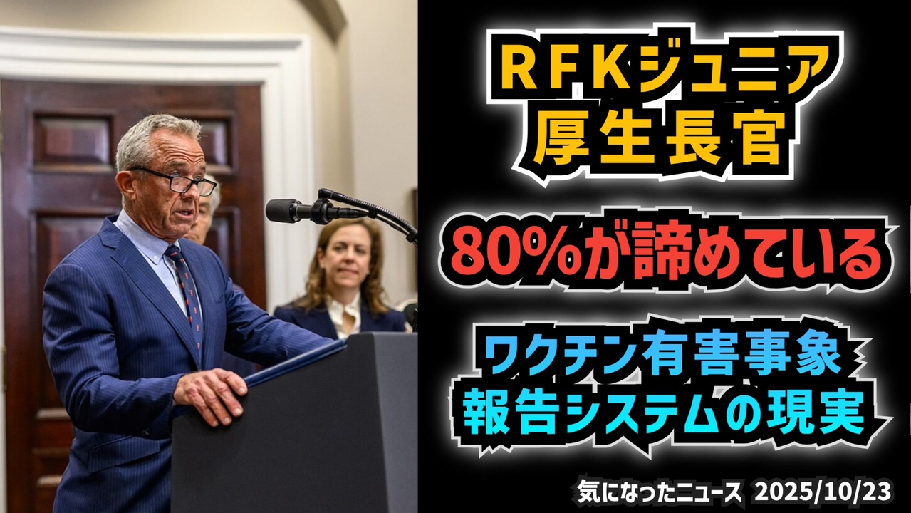 【日本は?】◆RFKジュニア厚生長官「被害者の80%が諦めている」ワクチン有害事象報告システムの現実<br><br>あらすじ<br>接種後に体調変化を感じた人々の声を集めるために設けられた「有害事象報告システム」。<br>しかし、その手続きは驚くほど複雑で、医療従事者も戸惑うほど。<br>多くの人が報告を諦め、公式なデータとして残らない実態が明らかになりつつある。<br><br>本作は、統計に現れない「声なき声」がなぜ置き去りにされてきたのかに迫る。<br>背景にある制度上の課題、追跡調査の欠如 ― そして、より安全で透明性の高い医療を実現するために、今求められる改善とは。<br><br>◆今回の台本(詳細)<a href="https://keiichiro8140.hatenablog.com/entry/25102333111" target="_blank" rel="noopener nofollow">https://keiichiro8140.hatenablog.com/entry/25102333111</a><br><br>◆もしも(BAN)の時のためのマイリンク集<a href="https://lit.link/K16_888" target="_blank" rel="noopener nofollow">https://lit.link/K16_888</a><br><br>◆YouTubeチャンネル登録よろしくお願いします🙏 <a href="https://www.youtube.com/@K16news888" target="_blank" rel="noopener nofollow">https://www.youtube.com/@K16news888</a><br><br>ご覧いただきありがとうございます<br>m(_ _)m<br>気になったニュース 2025/10/23<br><br />著作権、肖像権に配慮して作成しております。<br><br>◆気になったニュースの台本!?<br>メモ代わりに作った台本をそのままあげてます<br><a href="https://keiichiro8140.hatenablog.com/." target="_blank" rel="noopener nofollow">https://keiichiro8140.hatenablog.com/.</a><br><br><br>ここからはシリーズ紹介<br><br><br>◆ ワクチン解毒・デトックス<br><a href="https://x.gd/fZweg" target="_blank" rel="noopener nofollow">https://x.gd/fZweg</a><br><br>◆ウイリアム・マキス博士のがん治療(イベルメクチン・フェンベンダゾール等)<br><a href="https://x.gd/AtFYS" target="_blank" rel="noopener nofollow">https://x.gd/AtFYS</a><br><br>◆予防接種健康被害救済制度<br><a href="https://x.gd/0xK9x" target="_blank" rel="noopener nofollow">https://x.gd/0xK9x</a><br><br>◆気になったニュース #1501~<br><br>◆ 【ショートver】気になったニュース<br><a href="https://x.gd/7MxXC" target="_blank" rel="noopener nofollow">https://x.gd/7MxXC</a><br><br>◆ 気になったニュース #1001~<br><a href="https://x.gd/Lp8gv" target="_blank" rel="noopener nofollow">https://x.gd/Lp8gv</a><br><br>◆ 気になったニュース #501~<br><a href="https://x.gd/EmbS4" target="_blank" rel="noopener nofollow">https://x.gd/EmbS4</a><br><br>◆ 気になったニュース #1~#500<br><a href="https://x.gd/uPhNb" target="_blank" rel="noopener nofollow">https://x.gd/uPhNb</a><br><br>◆ X(旧Twitter)・テレグラムで気になった情報<br><a href="https://x.gd/YG6FT" target="_blank" rel="noopener nofollow">https://x.gd/YG6FT</a><br><br>◆ 日比谷5万人パレードデ⚪生放送アーカイブ動画<br><a href="https://x.gd/3CHJv" target="_blank" rel="noopener nofollow">https://x.gd/3CHJv</a><br><br>◆日比谷5万人パレード⚪モのマイリスト作ってみました<br><a href="https://nico.ms/mylist/76828848?ref=sp_other" target="_blank" rel="noopener nofollow">https://nico.ms/mylist/76828848?ref=sp_other</a><br><br>◆3.30 令和の百姓⚪⚪<br><a href="https://www.nicovideo.jp/series/511791?ref=garage_share_other" target="_blank" rel="noopener nofollow">https://www.nicovideo.jp/series/511791?ref=garage_share_other</a><br><br>◆ 及川幸久さんの【XNEWS】シリーズ<br><a href="https://x.gd/3k78K" target="_blank" rel="noopener nofollow">https://x.gd/3k78K</a><br><br>◆これまでの動画<a href="https://x.gd/sPXoJ" target="_blank" rel="noopener nofollow">https://x.gd/sPXoJ</a><br><br>◆もしも(BAN)の時のためのマイリンク集<a href="https://lit.link/K-16_News44" target="_blank" rel="noopener nofollow">https://lit.link/K-16_News44</a><br><br>