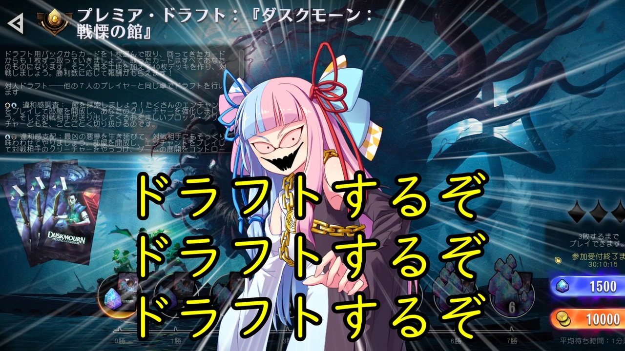 コメ返し(211話)<br><br>Q.ダスクモーン!いいね<br>A.というわけで今回もダスクモーンです<br><br>Q.斬鬼「止まるんじゃねえぞ・・・」<br>A.キボウノハナーー<br><br>Q.下家どないなっとんねん<br>A.緑流れてるしマジでなんもわからん<br><br>Q.なんかcipで2回探検できる奴いたよな<br>A.翡翠光のレインジャーのことだと思う、あれはガチだった<br><br>Q.やっぱレアって強えや!<br>A.レアが流れてくるMTGAは神ゲー、皆もドラフト!しよう!<br><br>コメ返し(212話)<br><br>Q.無限要素が入ってないやん!<br>A.そもそもあの人は無限には回さないから...<br><br>Q.X-ATM092は一応蜘蛛モチーフ、3Dでリアルっぽい大蜘蛛とか出されると失神する人がいそう<br>A.FFコラボでも一応蜘蛛扱いになってるね なお領界路コラボイラストは...(特に蜘蛛妄想お前だよ)<br><br>Q.マナバーンせずに土地をタップしたままに出来るカードだぞ<br>A.キマイラ像「ほーん」<br><br><br>211話の広告者様<br><br>亀吉さん エクスプロージョンさん ワディさん sm13869948さん 四暗刻さん ぁぷたさん ああああああさん yoxolaさん 亀吉さん まりもさん 道端さん さどんです♪さん このみ(兄)さん 坂東ディーさん ジャンクさん hogeさん 棒sulikenさん<br><br><br>212話の広告者様<br><br>量産型運河さん ワディさん まりもさん sm13869948さん 四暗刻さん スパイスさん ぁぷたさん <br>ああああああさん yoxolaさん 道端さん へるさんさん ʚりあむɞさん 坂東ディーさん ジャンクさん 駿平汰さん 棒sulikenさん hogeさん<br><br><br>皆さんありがとうございます!<br><br><br>ワディ兄貴からギフトを両話ともども頂きました!ありがとうございます!!!!!<br><br><br>前><a href="https://www.nicovideo.jp/watch/sm45531838" class="watch">sm45531838</a> 次><a href="https://www.nicovideo.jp/watch/sm45568917" class="watch">sm45568917</a><br><br>ツイ><a href="https://twitter.com/tNK3ob36cqRwyJE" target="_blank" rel="noopener nofollow">https://twitter.com/tNK3ob36cqRwyJE</a><br>MTGマイリス><a href="https://www.nicovideo.jp/mylist/40093606" target="_blank" rel="noopener">mylist/40093606</a><br><br>凍結燃焼の奇MTGはファンコンテンツ・ポリシーに沿った非公式のファンコンテンツです。ウィザーズ社の認可/許諾は得ていません。題材の一部に、ウィザーズ・オブ・ザ・コースト社の財産を含んでいます。<br>©Wizards of the Coast LLC.<br>