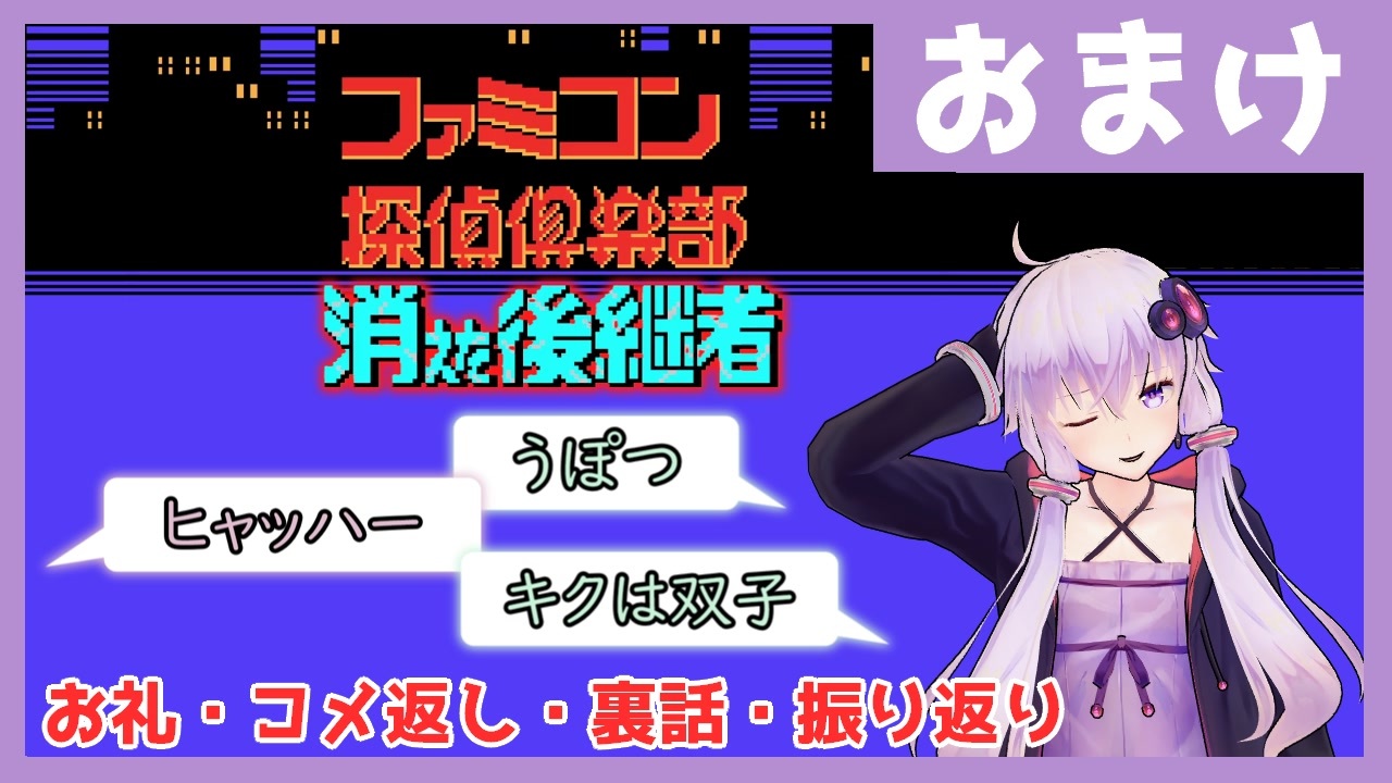 シリーズを完走した感想です。<br>コメントを沢山いただき大変感謝しております!全部読んでます!<br>(今回は金曜21時に間に合わなんだ...いつもは金曜21時です)<br><br>※当動画にはネタバレが含まれます。ご注意ください。<br><br>リンク<br>------<br>最初 : <a href="https://www.nicovideo.jp/watch/sm44785364" class="watch">sm44785364</a><br><br>シリーズ : <a href="https://www.nicovideo.jp/series/510333" target="_blank" rel="noopener">series/510333</a><br><br>YouTube : <a href="https://www.youtube.com/@YuzukingtonYukari" target="_blank" rel="noopener nofollow">https://www.youtube.com/@YuzukingtonYukari</a><br><br>チャプター<br>----------<br><a href="#" class="seekTime" data-seekTime="0:00" onclick="seekNicoPlayer('#0:00'); return false;">#0:00</a> OP<br><a href="#" class="seekTime" data-seekTime="1:17" onclick="seekNicoPlayer('#1:17'); return false;">#1:17</a> 動画作成の裏話<br><a href="#" class="seekTime" data-seekTime="4:48" onclick="seekNicoPlayer('#4:48'); return false;">#4:48</a> いただけた反応(広告お礼・コメ返し)<br><a href="#" class="seekTime" data-seekTime="20:14" onclick="seekNicoPlayer('#20:14'); return false;">#20:14</a> ED<br><br>ゲーム<br>------<br>ファミコン探偵倶楽部 消えた後継者 - ゲームボーイアドバンス (GBA)<br><br>ファミリーコンピュータ ディスクシステム (FCD) 用ソフトをゲームボーイアドバンス (GBA) に移植したシリーズ「ファミコンミニ ディスクシステムセレクション」の『ファミコン探偵倶楽部 消えた後継者』をプレイしています。<br><br>出演者<br>------<br>司会進行<br> CV : VOICEROID:結月ゆかり<br>橘あゆみ<br> CV : VOICEVOX:春日部つむぎ<br>綾城二郎<br> CV : VOICEVOX:青山龍星<br>コメント読み上げ<br> CV : VOICEVOX:ずんだもん<br> CV : VOICEVOX:四国めたん