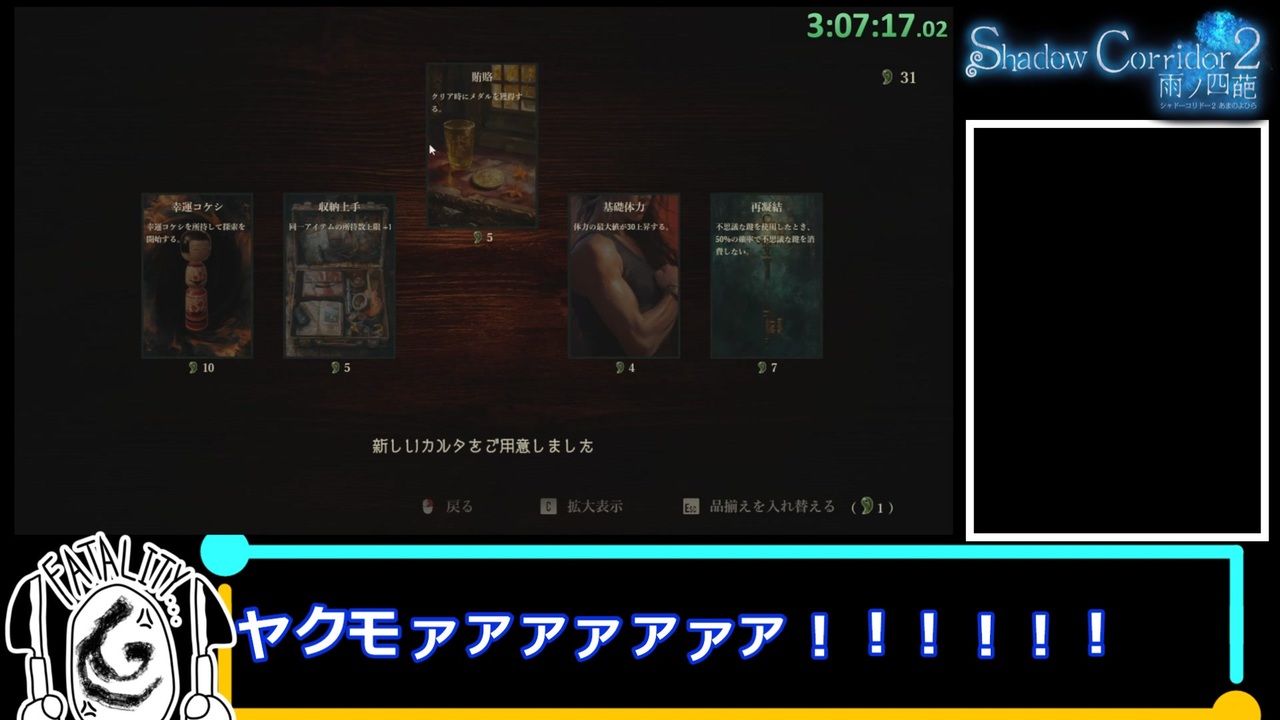 おつ<br><br>シャドーコリドー2雨ノ四葩↓<br><a href="https://store.steampowered.com/app/2310700/Shadow_Corridor_2/?l=japanese" target="_blank" rel="noopener nofollow">https://store.steampowered.com/app/2310700/Shadow_Corridor_2/?l=japanese</a><br>影廊TA勢のお部屋↓<br><a href="https://seesaawiki.jp/shadowcorridor_run/" target="_blank" rel="noopener nofollow">https://seesaawiki.jp/shadowcorridor_run/</a><br>無編集FULL↓<br><a href="https://youtu.be/cJnRSG-7QYk?si=wYWmtMmYR3P7HxF1" target="_blank" rel="noopener nofollow">https://youtu.be/cJnRSG-7QYk?si=wYWmtMmYR3P7HxF1</a><br>COEIROINK:リリンちゃん