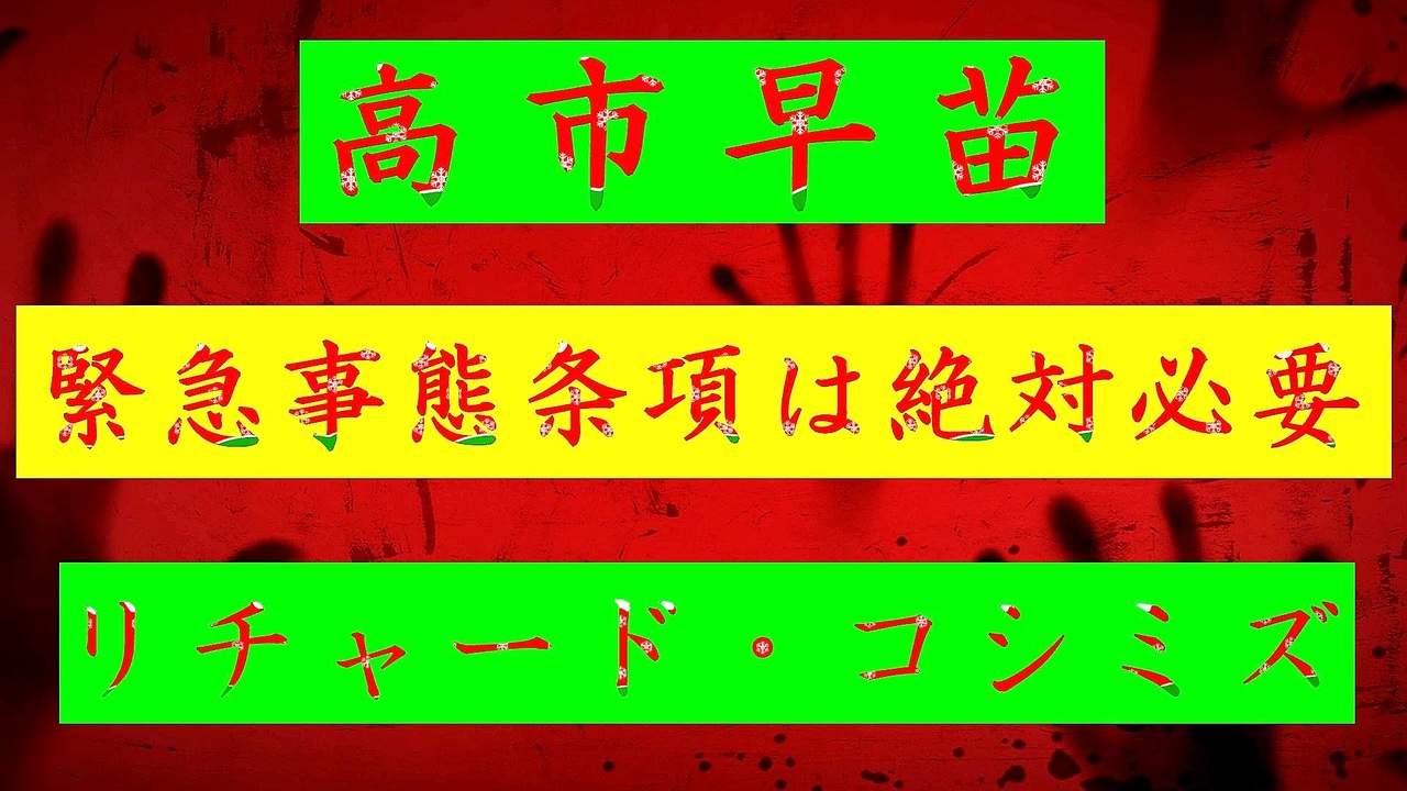 <span style="color: #ff0000;"><strong>◐『 高市早苗 』、『 緊急事態条項 』は『 絶対必要 』</strong></span><br><br> <span style="color: #38761d;"><strong>◐『「 リチャード・コシミズ・チャンネル 」</strong></span><span style="color: #ff0000;"><strong>⦅ ニコニコ チャンネル ⦆</strong></span><span style="color: #38761d;"><strong>』</strong></span><br> <span style="color: #0000ff;"><strong><a href="https://ch.nicovideo.jp/richardkoshimizu" target="_blank" rel="noopener nofollow">https://ch.nicovideo.jp/richardkoshimizu</a></strong></span><br><br><span style="color: #38761d;"><strong> ◐『「 リチャード・コシミズ 」</strong></span><span style="color: #ff0000;"><strong>「 ニコニコ生放送⦅ LIVE ⦆」</strong></span><span style="color: #38761d;"><strong>』</strong></span><br> <span style="color: #0000ff;"><strong><a href="https://www.nicovideo.jp/user/120930363/live_programs" target="_blank" rel="noopener nofollow">https://www.nicovideo.jp/user/120930363/live_programs</a></strong></span><br><br><span style="color: #38761d;"><strong> ◐『「 リチャード・コシミズ 講演会 」</strong></span><span style="color: #ff0000;"><strong>公式「 動画ギャラリー 」⦅ 最新動画 ⦆⦅ YouTube版 ⦆</strong></span><span style="color: #38761d;"><strong>』</strong></span><br> <span style="color: #0000ff;"><strong><a href="https://www.youtube.com/@richardkoshimizu-video-gallery" target="_blank" rel="noopener nofollow">https://www.youtube.com/@richardkoshimizu-video-gallery</a></strong></span><br><br>
