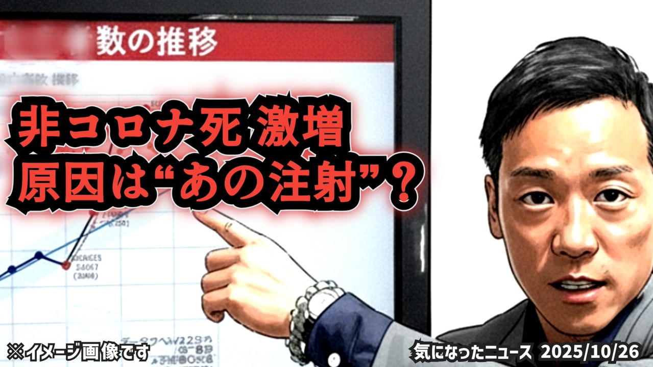◆非コロナ死 激増…原因は“あの注射”?<br><br>あらすじ<br>大阪府泉大津市の南出賢一市長が、公式の人口統計をもとに「日本だけが2022年・2023年と死亡数が異常に増えている」と警鐘を鳴らしました。<br>一方、厚労省は統計上の予測値を引き上げ、あたかも“超過死亡がない”ように見える形に変更。<br>そして、記者会見で上野厚労大臣が「ワクチンのせいではない」と即答した場面がSNSで話題に。<br>市長が語る「死亡数のカーブが急上昇した理由」とは――。<br>数字が示す“日本の異変”を、あなたはどう見るでしょうか。<br><br>◆今回の台本(詳細)<a href="https://keiichiro8140.hatenablog.com/entry/251016662222" target="_blank" rel="noopener nofollow">https://keiichiro8140.hatenablog.com/entry/251016662222</a><br><br>◆これまでの動画<a href="https://x.gd/sPXoJ" target="_blank" rel="noopener nofollow">https://x.gd/sPXoJ</a> <br><br>◆もしも(BAN)の時のためのマイリンク集<a href="https://lit.link/K16_888" target="_blank" rel="noopener nofollow">https://lit.link/K16_888</a> <br><br>◆YouTubeチャンネル登録よろしくお願いします🙏 <a href="https://www.youtube.com/@K16news888" target="_blank" rel="noopener nofollow">https://www.youtube.com/@K16news888</a><br><br>ご覧いただきありがとうございます <br>m(_ _)m <br>気になったニュース 2025/10/26<br><br />著作権、肖像権に配慮して作成しております。<br><br>◆気になったニュースの台本!?<br>メモ代わりに作った台本をそのままあげてます<br><a href="https://keiichiro8140.hatenablog.com/." target="_blank" rel="noopener nofollow">https://keiichiro8140.hatenablog.com/.</a><br><br><br>ここからはシリーズ紹介<br><br><br>◆ ワクチン解毒・デトックス<br><a href="https://x.gd/fZweg" target="_blank" rel="noopener nofollow">https://x.gd/fZweg</a><br><br>◆ウイリアム・マキス博士のがん治療(イベルメクチン・フェンベンダゾール等)<br><a href="https://x.gd/AtFYS" target="_blank" rel="noopener nofollow">https://x.gd/AtFYS</a><br><br>◆予防接種健康被害救済制度<br><a href="https://x.gd/0xK9x" target="_blank" rel="noopener nofollow">https://x.gd/0xK9x</a><br><br>◆気になったニュース #1501~<br><br>◆ 【ショートver】気になったニュース<br><a href="https://x.gd/7MxXC" target="_blank" rel="noopener nofollow">https://x.gd/7MxXC</a><br><br>◆ 気になったニュース #1001~<br><a href="https://x.gd/Lp8gv" target="_blank" rel="noopener nofollow">https://x.gd/Lp8gv</a><br><br>◆ 気になったニュース #501~<br><a href="https://x.gd/EmbS4" target="_blank" rel="noopener nofollow">https://x.gd/EmbS4</a><br><br>◆ 気になったニュース #1~#500<br><a href="https://x.gd/uPhNb" target="_blank" rel="noopener nofollow">https://x.gd/uPhNb</a><br><br>◆ X(旧Twitter)・テレグラムで気になった情報<br><a href="https://x.gd/YG6FT" target="_blank" rel="noopener nofollow">https://x.gd/YG6FT</a><br><br>◆ 日比谷5万人パレードデ⚪生放送アーカイブ動画<br><a href="https://x.gd/3CHJv" target="_blank" rel="noopener nofollow">https://x.gd/3CHJv</a><br><br>◆日比谷5万人パレード⚪モのマイリスト作ってみました<br><a href="https://nico.ms/mylist/76828848?ref=sp_other" target="_blank" rel="noopener nofollow">https://nico.ms/mylist/76828848?ref=sp_other</a><br><br>◆3.30 令和の百姓⚪⚪<br><a href="https://www.nicovideo.jp/series/511791?ref=garage_share_other" target="_blank" rel="noopener nofollow">https://www.nicovideo.jp/series/511791?ref=garage_share_other</a><br><br>◆ 及川幸久さんの【XNEWS】シリーズ<br><a href="https://x.gd/3k78K" target="_blank" rel="noopener nofollow">https://x.gd/3k78K</a><br><br>◆これまでの動画<a href="https://x.gd/sPXoJ" target="_blank" rel="noopener nofollow">https://x.gd/sPXoJ</a><br><br>◆もしも(BAN)の時のためのマイリンク集<a href="https://lit.link/K-16_News44" target="_blank" rel="noopener nofollow">https://lit.link/K-16_News44</a><br><br>