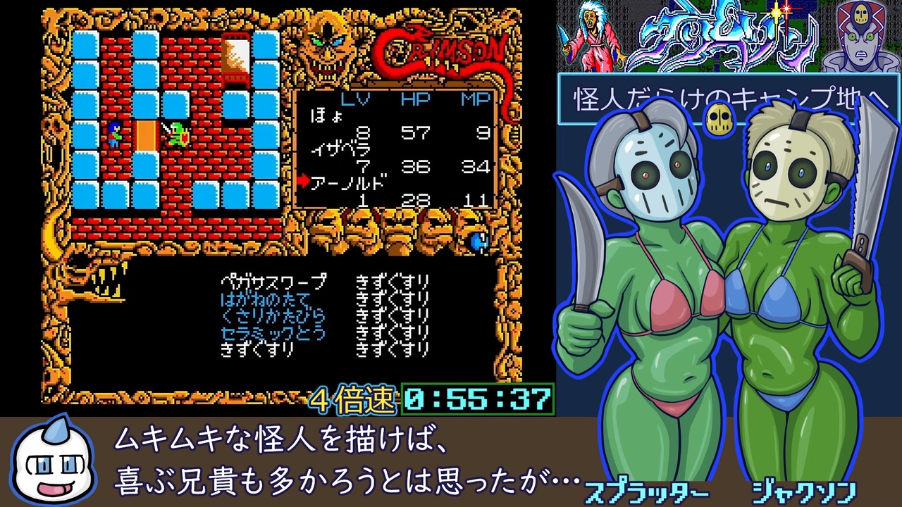 3人目の仲間は、亡国の王子です。<br>ムーンブル〇とは関係ないよ!!<br><br>Part3 船入手~3人目の仲間加入 まで<br><br><br>レギュレーション<br>・バグ技・裏技の使用【なし】<br>・ラスダン突破に必要なメッセージの入手カット【あり】<br><br>計測区間<br>・開始:タイトル画面で[SPCキー]を押した瞬間 <br>・終了: EDのスタッフロールの文字が停止した瞬間<br><br>プレイ環境<br>・MSX2,DISK版「クリムゾン」(…雑誌『MSX・FAN』1995年4月号付録のもの)<br>・MSX-Assosiation公式エミュレータ<br> 「MSXPlayer Ver.2025.0.14.10.0」<br>・録画「OBS Studio 31.1.2(64bit)」<br>・USBゲームパッド使用(連射機能は不使用)<br><br>=============================<br><br>このコンテンツは「プロジェクトEGG」二次創作(ゲーム実況)ガイドラインに沿って公開をしています。<br><br>◆ゲームタイトル:<br>クリムゾン(MSX2版)<br><a href="https://www.amusement-center.com/project/egg/game/?product_id=505" target="_blank" rel="noopener nofollow">https://www.amusement-center.com/project/egg/game/?product_id=505</a><br><br>◆「プロジェクトEGG」関連情報:<br>公式サイト:<a href="https://bit.ly/2NUqiWC" target="_blank" rel="noopener nofollow">https://bit.ly/2NUqiWC</a><br>YouTube:<a href="https://bit.ly/3DEf2ob" target="_blank" rel="noopener nofollow">https://bit.ly/3DEf2ob</a><br>Twitter:<a href="https://bit.ly/3DnlL5u" target="_blank" rel="noopener nofollow">https://bit.ly/3DnlL5u</a><br>Facebook:<a href="https://bit.ly/3DiYaTt" target="_blank" rel="noopener nofollow">https://bit.ly/3DiYaTt</a><br><br>◆二次創作(ゲーム実況)関連情報:<br>「プロジェクトEGG」二次創作(ゲーム実況)ガイドライン:<a href="https://bit.ly/3tMoSQh" target="_blank" rel="noopener nofollow">https://bit.ly/3tMoSQh</a><br>不正利用の通報:<a href="https://bit.ly/3KTtjiJ" target="_blank" rel="noopener nofollow">https://bit.ly/3KTtjiJ</a><br>著作物ID:#A000000000002636<br>利用許諾協力:#クリエイターサポートプログラム<br>クリエイターサポートプログラム公式Twitter:<a href="https://bit.ly/3zXvoYF" target="_blank" rel="noopener nofollow">https://bit.ly/3zXvoYF</a><br><br>◆コピーライト:<br>©D4Enterprise Co.,Ltd. / ©MSX Licensing Corporation All Rights Reserved. / 'MSX' is a trademark of the MSX Licensing Corporation.