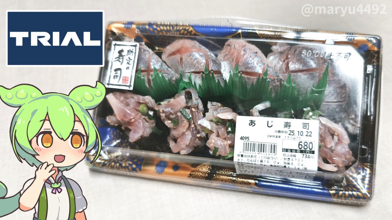 いつもは量が多くてお手頃価格が多いトライアルですが<br>最近、普通の価格でちょっと良さげなお寿司が陳列されるようになりました。<br><br><br>【参考】<br>トライアルホールディングスと西友の経営統合が完了 <br>西友の新社長に楢木野 仁司が就任 2025.07.02(トライアル)<br><a href="https://trial-holdings.inc/news/release/686382439f0b7297ddd48fb7/" target="_blank" rel="noopener nofollow">https://trial-holdings.inc/news/release/686382439f0b7297ddd48fb7/</a><br>ライアルHD/西友を母店とした小型店<br>「TRIAL GO」関東に年内出店 2025.07.02(流通ニュース)<br><a href="https://www.ryutsuu.biz/strategy/r070218.html" target="_blank" rel="noopener nofollow">https://www.ryutsuu.biz/strategy/r070218.html</a><br>トライアル、西友の3800億円買収完了 <br>西友社長に楢木野氏 2025.07.02(日本経済新聞)<br><a href="https://www.nikkei.com/article/DGXZQOUC019910R00C25A7000000/" target="_blank" rel="noopener nofollow">https://www.nikkei.com/article/DGXZQOUC019910R00C25A7000000/</a><br>トライアルHDが挑む薄氷の利益計画、「西友の買収」は<br>純利益を吹き飛ばしかねない“諸刃の剣”2025.10.17(ダイアモンドオンライン)<br><a href="https://diamond.jp/articles/-/374008" target="_blank" rel="noopener nofollow">https://diamond.jp/articles/-/374008</a><br><br>【使用した素材】(※敬称略) <br>(合成音声)VOICEVOX/ずんだもん/四国めたん<br><a href="https://voicevox.hiroshiba.jp/" target="_blank" rel="noopener nofollow">https://voicevox.hiroshiba.jp/</a> <br>(立ち絵)坂本アヒル<br> <a href="https://seiga.nicovideo.jp/seiga/im10788496" target="_blank" rel="noopener nofollow">https://seiga.nicovideo.jp/seiga/im10788496</a><br>(楽曲)甘茶の音楽工房/「楽しい麦畑」「フルーツパフェ」「お城の舞踏会」<br><a href="https://amachamusic.chagasi.com/" target="_blank" rel="noopener nofollow">https://amachamusic.chagasi.com/</a>