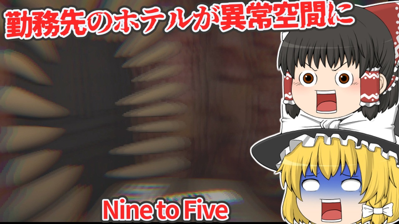 ゆっくり霊夢とゆっくり魔理沙が海外のホラーゲームに挑むようです。<br>本動画は東方Projectの二次創作です。<br> <br>◎あらすじ◎<br>あなたは地元のホテルで、以前の受付係の後任として働き始めた!<br>お仕事頑張ってくださいね!<br><br>※投稿者のガバ翻訳付きです。<br>配信ページ <br><a href="https://onskullgames.itch.io/nine-to-five" target="_blank" rel="noopener nofollow">https://onskullgames.itch.io/nine-to-five</a><br><br>BGM・効果音をお借りしました。<br><a href="https://otologic.jp/" target="_blank" rel="noopener nofollow">https://otologic.jp/</a><br><br>立ち絵をお借りしました。<br><a href="https://seiga.nicovideo.jp/seiga/im10933652" target="_blank" rel="noopener nofollow">https://seiga.nicovideo.jp/seiga/im10933652</a><br><a href="https://seiga.nicovideo.jp/seiga/im11230837" target="_blank" rel="noopener nofollow">https://seiga.nicovideo.jp/seiga/im11230837</a><br><a href="https://seiga.nicovideo.jp/seiga/im11229020" target="_blank" rel="noopener nofollow">https://seiga.nicovideo.jp/seiga/im11229020</a><br><a href="https://seiga.nicovideo.jp/seiga/im4817713" target="_blank" rel="noopener nofollow">https://seiga.nicovideo.jp/seiga/im4817713</a>