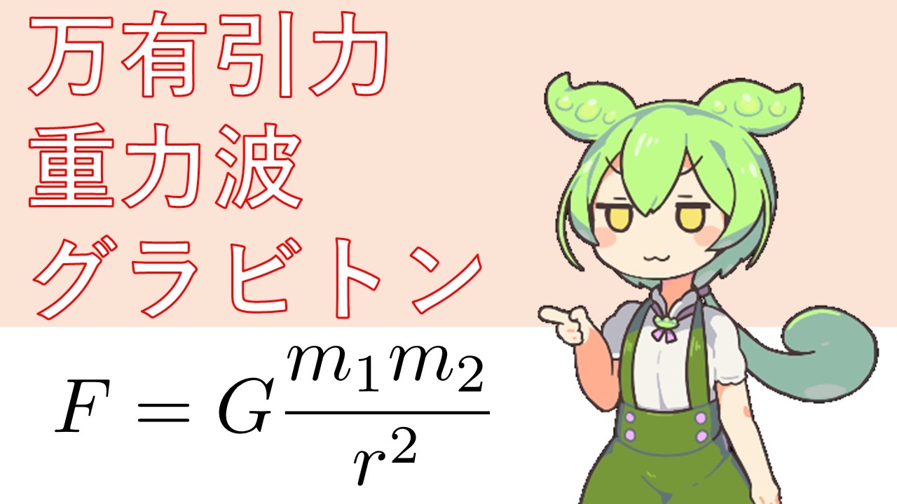 リクエストにお応えして作りました。重力ってちゃんと考えてみると結構おもしろいですね。<br><br>[参考文献]<br>原島鮮. 「力学」. 裳華房. <br>"Evidence for chiral graviton modes in fractional quantum Hall liquids". Jiehui Liang. Nature. 2024.<br><a href="https://doi.org/10.1038/s41586-024-07201-w" target="_blank" rel="noopener nofollow">https://doi.org/10.1038/s41586-024-07201-w</a><br><br>[画像]<br>国立天文台のページ:<a href="https://gwpo.nao.ac.jp/about_gw/" target="_blank" rel="noopener nofollow">https://gwpo.nao.ac.jp/about_gw/</a><br>LIGO <a href="https://www.ligo.caltech.edu/image/ligo20150731c" target="_blank" rel="noopener nofollow">https://www.ligo.caltech.edu/image/ligo20150731c</a><br>KAGRA(LIGOのギャラリー) <a href="https://www.ligo.caltech.edu/image/ligo20191004b" target="_blank" rel="noopener nofollow">https://www.ligo.caltech.edu/image/ligo20191004b</a><br>いらすとや <a href="https://www.irasutoya.com/" target="_blank" rel="noopener nofollow">https://www.irasutoya.com/</a><br><br>[背景画像]<br>理科室 <a href="https://commons.nicovideo.jp/works/nc200338" target="_blank" rel="noopener">nc200338</a><br><br>[ソフトウェア]<br>ゆっくりMovieMaker v4 <br><a href="https://commons.nicovideo.jp/material/nc236011" target="_blank" rel="noopener nofollow">https://commons.nicovideo.jp/material/nc236011</a><br><br>[音声]<br>VOICEVOX ずんだもん<br>VOICEVOX 四国めたん<br>VOICEVOX 春日部つむぎ<br>VOICEVOX ちび式じい<br><br>[BGM]<br>KK「自宅にて」<a href="https://dova-s.jp/bgm/play4058.html" target="_blank" rel="noopener nofollow">https://dova-s.jp/bgm/play4058.html</a><br>MusMus「依頼」 <a href="https://musmus.main.jp/jazz.html" target="_blank" rel="noopener nofollow">https://musmus.main.jp/jazz.html</a><br>【ジングル】少し切ない宇宙系ジングル②「ちっぽけなわたしと宇宙」 <a href="https://commons.nicovideo.jp/works/nc425632" target="_blank" rel="noopener">nc425632</a><br><br>[効果音]<br>チャイム <a href="https://commons.nicovideo.jp/works/nc370592" target="_blank" rel="noopener">nc370592</a><br />■SNS<br>twitter: <a href="https://twitter.com/KadenzP" target="_blank" rel="noopener nofollow">https://twitter.com/KadenzP</a><br>blog: <a href="https://kadenzp.hatenablog.com/" target="_blank" rel="noopener nofollow">https://kadenzp.hatenablog.com/</a><br><br>BOOTH(音源配布): <a href="https://kadenzp.booth.pm/" target="_blank" rel="noopener nofollow">https://kadenzp.booth.pm/</a><br><br>YouTubeチャネル: <a href="https://www.youtube.com/channel/UC4mDlCYY0kBAG0V9iJY1kmg" target="_blank" rel="noopener nofollow">https://www.youtube.com/channel/UC4mDlCYY0kBAG0V9iJY1kmg</a><br>