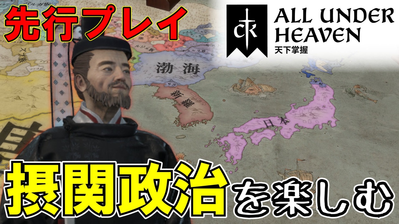 <strong>注意!本動画はYoutubeに投稿した先行プレイ動画となります。</strong><br><br>CK3新DLC「All Under Heaven」のプレイ動画となります <br>遂に日本が追加!早速平安時代の日本を満喫しましょう<br><br>CK3新DLC「All Under Heaven」は絶賛発売中! <a href="https://store.steampowered.com/app/3315530/Crusader_Kings_III_All_Under_Heaven/?l=japanese" target="_blank" rel="noopener nofollow">https://store.steampowered.com/app/3315530/Crusader_Kings_III_All_Under_Heaven/?l=japanese</a> <br><br>Youtube版<br><a href="https://youtu.be/CazxBRRcR44" target="_blank" rel="noopener nofollow">https://youtu.be/CazxBRRcR44</a><br><br>シナリオ:867年 冒険者たち<br>プレイキャラ:上総国の国司 平高望<br>Crusader Kings Ⅲ バージョン1.18.0<br>使用MOD:なし<br>難易度:ノーマル<br>PC環境:Intel(R) Core(TM) Ultra 7 265F (2.40 GHz) + GeForce RTX™ 5060<br>使用素材、資料等は動画末尾に記載<br><br>使用ソフト:ゆっくりMovieMaker4