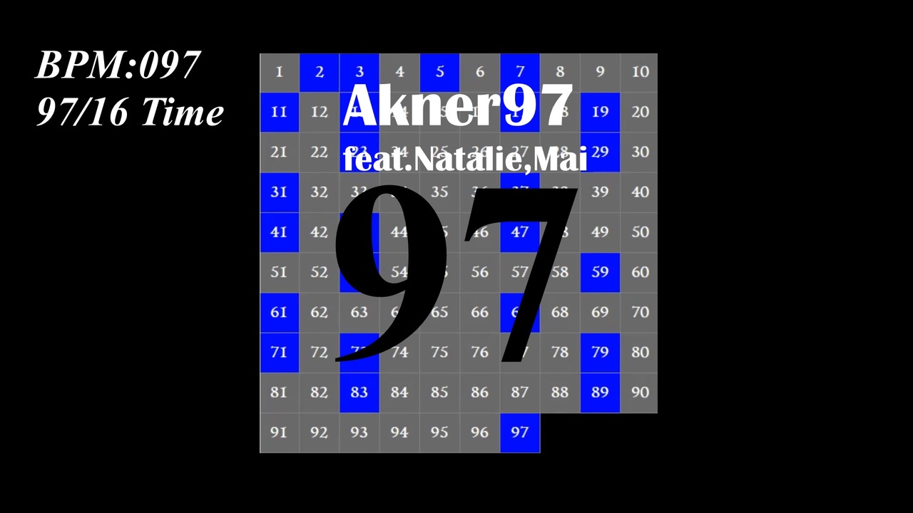 はじめまして、Akner9(あくなあないん)あらため、Akner97(あくなあ・ないんてぃせぶん)と申します。<br><br>変拍子楽曲投稿祭2025 に参加いたします。<br><br>人類を魅了して止まない「素数」<br><br> ・1と自分自身でしか割り切れないという孤独性<br> ・必ず自分より大きい素数が存在するという無限性<br><br>をテーマに、1~100までの素数でビートを組んで、最大素数の97拍子(97/16)の曲を作ってみました<br><br>混合拍子という点では、、、6/4×3回+25/16拍子で解釈しています。<br><br>生演奏する場合には、6/4を3回繰り返して、4回目で、1/16だけもたって次のループに戻る、、、というようにすれば、たぶんできると思います<br><br>ちなみに、作者は、サビだけギターを人力で入れたのですが、それがわかっていてもグダグダでした<br><br>タイトル:97<br>Words/Music:Akner97<br>Vo/Cho:Natalie、Mai(SynthesizerV)<br><br>イベント公式X<br><a href="https://x.com/ITime_VocaloFes" target="_blank" rel="noopener nofollow">https://x.com/ITime_VocaloFes</a><br><br>作者のX<br><a href="https://x.com/Akner91" target="_blank" rel="noopener nofollow">https://x.com/Akner91</a><br><br>