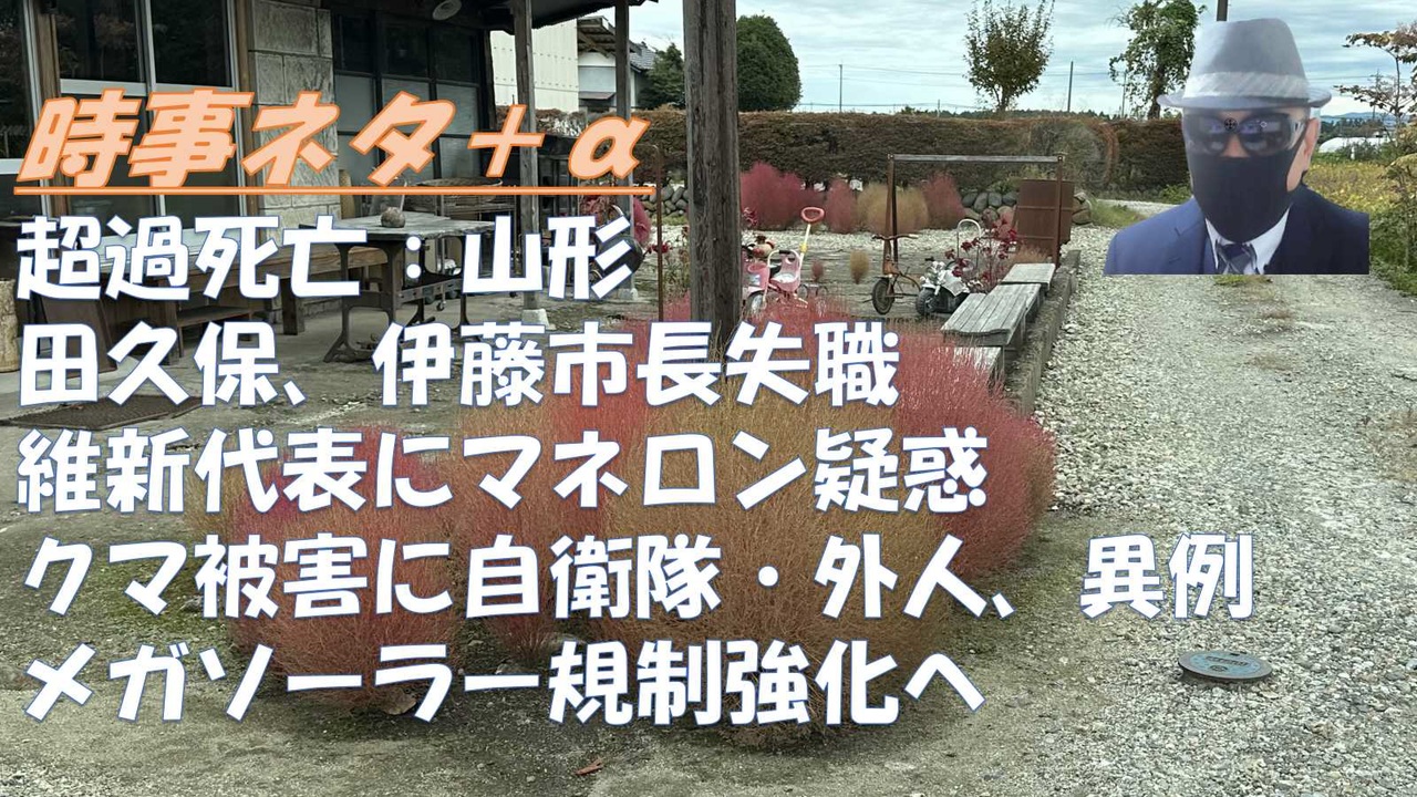 ◆和田秀樹<br>メディアが隠す日弁連の『生活保護への取り組み』<br><br>◆政経プラットフォーム<br>なぜ公明党は国交大臣ポストを手放したのか?裏に潜む創価学会と中国の圧力とは? 宇山卓栄氏 #494<br>・二階<br>・岸田派<br><br>◆深田萌絵<br>【助けてください】株式会社ペライチCEO藤本旬に370万円が横領されそうです。<br><br>警察要請で熊を撃った猟友会が逮捕され、熊駆除のために外国人に猟銃許可、自衛隊出動の果て?<br>◆安冨歩<br>高市早苗総理も危機!維新の藤田代表に2千万円の税金ロンダリング疑惑!安冨歩東京大学名誉教授。一月万冊<br><br>◆親日の一般人チャンネル<br>宮城県知事選挙で 参政党支持者の結束示す<br><br>◆メガソーラー規制強化へ!高市政権、再エネ政策の見直し始まる ~ 16法改正で“環境破壊”防止へ さらに高市政権、経営・管理ビザの大幅な変更 ~ 在日中国人320,000世帯に影響か<br><br>外国人政策見直し会議は 移民を推進する為の機関<br><br>◆ドクターシミズ<br>今年の9月に過去一の超過死亡になったのは、今のところ山形県だけ<br><br>田久保市長の失職決定 涙の会見に市民からは辛辣な声が続々と 「どんな感情?変なニュースで全国に知られたのは恥ずかしい」「神経がすごい」「演技」「ごまかしが悪かった」<br><br>「悪夢の民主党政権」←言うほど悪夢だったか? : 哲学ニュース<br><br>小泉進次郎防衛大臣、中国を痛烈批判<br><br>ガソリン旧暫定税率、12月末に廃止決定 現状から15円ほど下落か<br><br>#ガソリン暫定税率<br>#メガソーラー<br>#ドクターシミズ<br>#野口健<br>#鳩山由紀夫<br>#安冨歩<br>#失敗小僧<br>#カナダ人ニュース<br>#深田萌絵