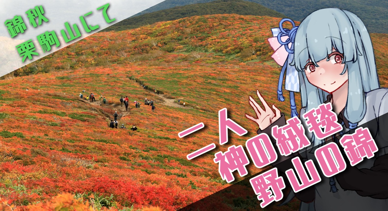 「紅葉、見に行こうよ!」(ギャグではない<br>山登りが趣味な琴葉葵からそんな誘いが。<br>「最近週末の天気が悪かったけど、この日なら大丈夫そう!」<br>「きっとめちゃくちゃ混むから、夜が明けたら登ろうよ!」<br>「出発は0時だからよろしくね!」<br>・・・山勢の朝は早いようだ。<br><br>一人称視点動画、好きな視点でミテネ。<br>(自分に置き換えてもヨシ、好きなカップリングで見てもヨシ…)<br><br>素材収録日:2024年10月4日<br>訪れた場所:栗駒山<br> (岩手県一関市、須川高原温泉から登山)<br><br><br>ドーモ、のいしゅと申します。<br>普段はあかりちゃんが旅行するシリーズ(<a href="https://www.nicovideo.jp/series/390281" target="_blank" rel="noopener">series/390281</a>)を作っています。<br>ご意見・苦情はこちらまで<br>X:<a href="https://x.com/noish_GV" target="_blank" rel="noopener nofollow">https://x.com/noish_GV</a><br>