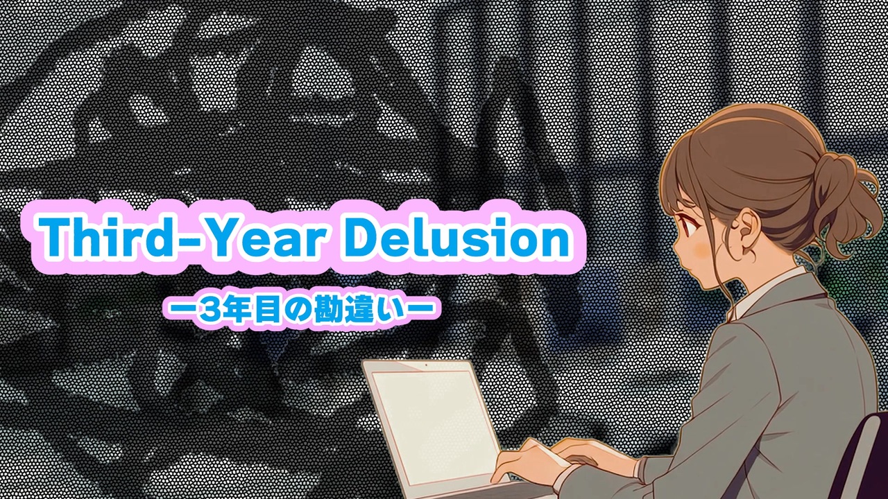▪️アンドリューシスターズみたいな楽曲を、と思って作り始め、気づいたらムード歌謡みたいになってしまいました…。でもなんか気に入ってます。あと、歌詞の内容は以前友人から相談された内容で実話だったりします…。<br><br>タイトル:3年目の勘違い<br><br>歌 Mai<br>作詞 honokaru<br>作曲 Shiro98<br>制作 月謡三音(ルナルトリノート)<br><br>------------------------------------------------------<br>1)<br>社会人 3年目<br>イケメンの上司から<br>誘われた もしかして<br>寿退社まで一直線?<br>会社での評判は 上々で<br>チームでの信頼 も超厚い<br>仕事もよくできて 理想の上司<br>そして訪れた ファミレスに あれ?<br><br>2)<br>好きなもの 頼んでと<br>満面の 優しい笑顔<br>メニュー見て 一つずつ<br>お値段 読み上げる それ必要?<br>それなのに まだ私 夢を見る<br>懸命に 萌え仕草 色仕掛け<br>好感度 上げる技 まだ足りない?<br>彼は今 目の前のごはんに夢中 あれ?<br><br><br>r1)<br>会話は 結局 仕事の進捗とか<br>もしかして今日 ただの面談?<br><br><br>r2)<br>会社での評判は 上々で<br>チームでの信頼 も超厚い<br>仕事もよくできて 理想の上司<br>明日から また仕事 頑張ろう はあ…<br>