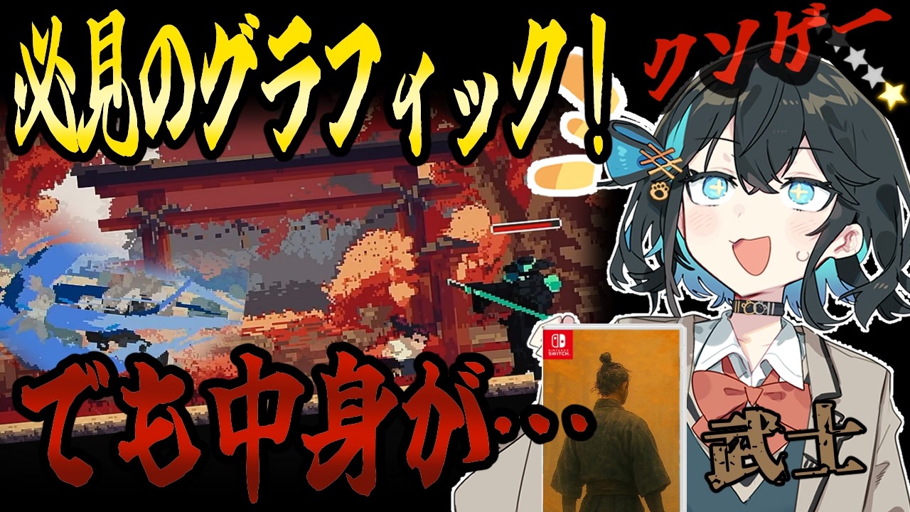 ドット絵はかなり良かったんだけどなぁ・・・<br>(一部編集ミスがありました、すまねえ)<br>【目次】<br><a href="#" class="seekTime" data-seekTime="00:00" onclick="seekNicoPlayer('#00:00'); return false;">#00:00</a> オープニング<br><a href="#" class="seekTime" data-seekTime="00:30" onclick="seekNicoPlayer('#00:30'); return false;">#00:30</a> ゲーム実況<br><a href="#" class="seekTime" data-seekTime="03:59" onclick="seekNicoPlayer('#03:59'); return false;">#03:59</a> 良い点<br><a href="#" class="seekTime" data-seekTime="05:29" onclick="seekNicoPlayer('#05:29'); return false;">#05:29</a> 悪い点<br><a href="#" class="seekTime" data-seekTime="08:48" onclick="seekNicoPlayer('#08:48'); return false;">#08:48</a> ゲームの総評<br><br>次 <a href="https://www.nicovideo.jp/watch/sm45619857" target="_blank" rel="noopener nofollow">https://www.nicovideo.jp/watch/sm45619857</a> <br>前 <a href="https://www.nicovideo.jp/watch/sm45539786" target="_blank" rel="noopener nofollow">https://www.nicovideo.jp/watch/sm45539786</a><br><br>遊んだゲーム <br>武士<br><br>開発メーカー <br>GAME NACIONAL<br><br>使用機材 <br>ゆっくりMovieMaker4 Lite <br><br>voicepeak 宮舞モカ 弦巻マキ<br><br>お借りした素材<br>宮舞モカ立ち絵 弦巻マキ立ち絵 かれい様 <br>宮舞モカ デフォルメ立ち絵 Ver.1_暁ノ湯様<br><br>玉ねぎ楷書_激_無料版v7 玉点堂様 梅干しフォント <br>toga様 ケイフォント すもももじ様 Genkai-Mincho-font源界明朝様 PixelMplus(ピクセル・エムプラス)様 <br>にくまるフォント 零ゴシック 装甲明朝 フロップデザインフォント様 <br>怨霊、暗黒ゾン字 暗黒工房様 <br>たぬき油性マジック 狸侍様 チェックポイントフォント よく飛ばない鳥様 <br><br>効果音ラボ様 みりんの動画素材様 telop.site様 いらすとや様 YOUTUBEの素材屋様 <br>DOVA-SYNDROME otologic様 White_Records様 <br>フリー素材サイトギャラリーハウス様 icon-rainbow Gam-Ol様<br>イラストAC<br><br>アーチ配置プラグイン いるかぁぁ様