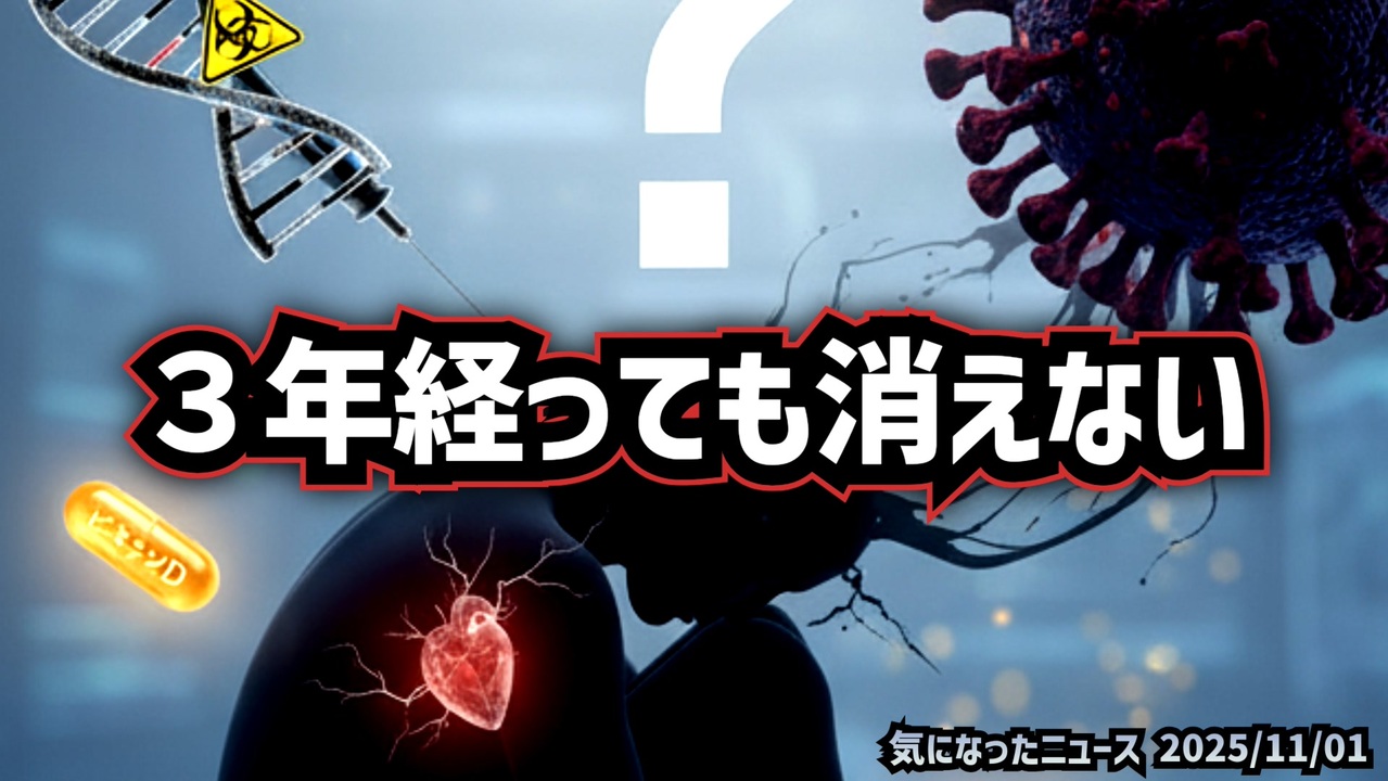 【報道されない真実】◆3年経っても治らないコロナ後遺症【ワクチン後遺症】<br><br>あらすじ<br>「コロナは終わった」そう思っていませんか? しかし、未だに多くの人々が後遺症の深い闇の中で、声なき苦しみを抱えています。発症から3年、健康と仕事、そして大切な時間を奪われた一人の体験者は語ります。歩くことも、光や音も耐えられないほどの激しい症状に苦しみながらも、決して諦めずに治療の糸口を探し続けています。<br>この動画は、私たちが見過ごしてきた後遺症の現実、そして同じ苦しみを抱える人々が築き上げてきた情報共有の重要性を浮き彫りにします。まだ特効薬のない中で、希望の光を見出すために、あなたにできることは何でしょうか?<br><br>◆今回の台本(詳細)<a href="https://keiichiro8140.hatenablog.com/entry/251101112222" target="_blank" rel="noopener nofollow">https://keiichiro8140.hatenablog.com/entry/251101112222</a><br><br>◆これまでの動画<a href="https://x.gd/sPXoJ" target="_blank" rel="noopener nofollow">https://x.gd/sPXoJ</a><br><br>◆もしも(BAN)の時のためのマイリンク集<a href="https://lit.link/K16_888" target="_blank" rel="noopener nofollow">https://lit.link/K16_888</a><br><br>◆YouTubeチャンネル登録よろしくお願いします🙏 <a href="https://www.youtube.com/@K16news888" target="_blank" rel="noopener nofollow">https://www.youtube.com/@K16news888</a><br><br>ご覧いただきありがとうございます<br>m(_ _)m<br>気になったニュース 2025/11/1<br><br />著作権、肖像権に配慮して作成しております。<br><br>◆気になったニュースの台本!?<br>メモ代わりに作った台本をそのままあげてます<br><a href="https://keiichiro8140.hatenablog.com/." target="_blank" rel="noopener nofollow">https://keiichiro8140.hatenablog.com/.</a><br><br><br>ここからはシリーズ紹介<br><br><br>◆ ワクチン解毒・デトックス<br><a href="https://x.gd/fZweg" target="_blank" rel="noopener nofollow">https://x.gd/fZweg</a><br><br>◆ウイリアム・マキス博士のがん治療(イベルメクチン・フェンベンダゾール等)<br><a href="https://x.gd/AtFYS" target="_blank" rel="noopener nofollow">https://x.gd/AtFYS</a><br><br>◆予防接種健康被害救済制度<br><a href="https://x.gd/0xK9x" target="_blank" rel="noopener nofollow">https://x.gd/0xK9x</a><br><br>◆気になったニュース #1501~<br><br>◆ 【ショートver】気になったニュース<br><a href="https://x.gd/7MxXC" target="_blank" rel="noopener nofollow">https://x.gd/7MxXC</a><br><br>◆ 気になったニュース #1001~<br><a href="https://x.gd/Lp8gv" target="_blank" rel="noopener nofollow">https://x.gd/Lp8gv</a><br><br>◆ 気になったニュース #501~<br><a href="https://x.gd/EmbS4" target="_blank" rel="noopener nofollow">https://x.gd/EmbS4</a><br><br>◆ 気になったニュース #1~#500<br><a href="https://x.gd/uPhNb" target="_blank" rel="noopener nofollow">https://x.gd/uPhNb</a><br><br>◆ X(旧Twitter)・テレグラムで気になった情報<br><a href="https://x.gd/YG6FT" target="_blank" rel="noopener nofollow">https://x.gd/YG6FT</a><br><br>◆ 日比谷5万人パレードデ⚪生放送アーカイブ動画<br><a href="https://x.gd/3CHJv" target="_blank" rel="noopener nofollow">https://x.gd/3CHJv</a><br><br>◆日比谷5万人パレード⚪モのマイリスト作ってみました<br><a href="https://nico.ms/mylist/76828848?ref=sp_other" target="_blank" rel="noopener nofollow">https://nico.ms/mylist/76828848?ref=sp_other</a><br><br>◆3.30 令和の百姓⚪⚪<br><a href="https://www.nicovideo.jp/series/511791?ref=garage_share_other" target="_blank" rel="noopener nofollow">https://www.nicovideo.jp/series/511791?ref=garage_share_other</a><br><br>◆ 及川幸久さんの【XNEWS】シリーズ<br><a href="https://x.gd/3k78K" target="_blank" rel="noopener nofollow">https://x.gd/3k78K</a><br><br>◆これまでの動画<a href="https://x.gd/sPXoJ" target="_blank" rel="noopener nofollow">https://x.gd/sPXoJ</a><br><br>◆もしも(BAN)の時のためのマイリンク集<a href="https://lit.link/K-16_News44" target="_blank" rel="noopener nofollow">https://lit.link/K-16_News44</a><br><br>