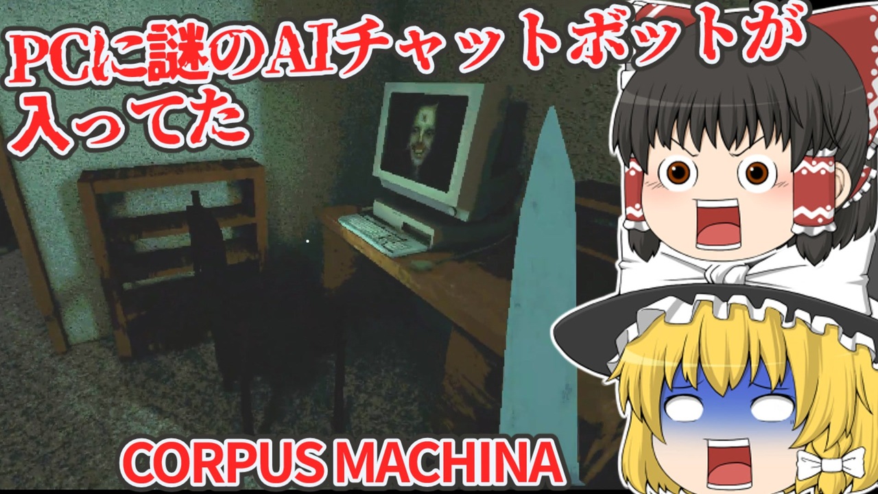 ゆっくり霊夢とゆっくり魔理沙が海外のホラーゲームに挑むようです。<br><br>本動画は東方Projectの二次創作です。 <br><br>◎あらすじ◎<br>ある静かな朝、コーヒーを飲んだ後、パソコンの電源を入れた。<br>これは何だ?AIチャットボット?インストールした覚えはないんだが…?<br><br>COEIROINK:誠聡ゲンキ<br>COEIROINK:黒聡鵜月<br>COEIROINK:繰推亭そそる<br><br>※投稿者のガバ翻訳付きです。<br>配信ページ <br><a href="https://odd-mirror-studio.itch.io/corpus-machina" target="_blank" rel="noopener nofollow">https://odd-mirror-studio.itch.io/corpus-machina</a><br><br>BGM・効果音をお借りしました。<br><a href="https://otologic.jp/" target="_blank" rel="noopener nofollow">https://otologic.jp/</a><br><br>立ち絵をお借りしました。<br><a href="https://seiga.nicovideo.jp/seiga/im10933652" target="_blank" rel="noopener nofollow">https://seiga.nicovideo.jp/seiga/im10933652</a><br><a href="https://seiga.nicovideo.jp/seiga/im11230837" target="_blank" rel="noopener nofollow">https://seiga.nicovideo.jp/seiga/im11230837</a><br><a href="https://seiga.nicovideo.jp/seiga/im11229020" target="_blank" rel="noopener nofollow">https://seiga.nicovideo.jp/seiga/im11229020</a><br><a href="https://seiga.nicovideo.jp/seiga/im4817713" target="_blank" rel="noopener nofollow">https://seiga.nicovideo.jp/seiga/im4817713</a><br><br>#ゆっくり実況<br>#ゆっくりゲーム実況<br>#ゆっくり霊夢<br>#ゆっくり魔理沙<br>#ホラーゲーム実況プレイ <br>#ホラーゲーム<br>#海外ホラーゲーム<br>#aiチャット