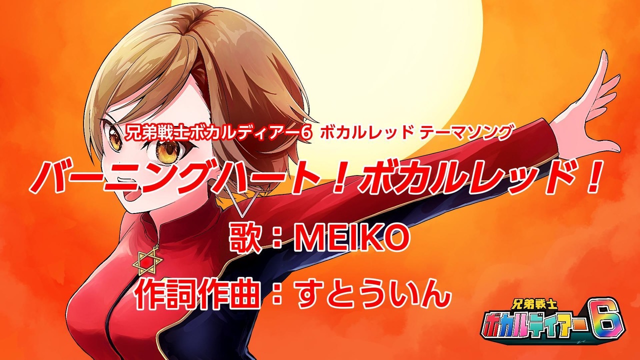MEIKO誕生祭2025参加曲です!<br>MEIKOさん、21周年のお誕生日おめでとうございます!<br>架空アニソン祭に投稿した兄弟戦士ボカルディアー6のリーダー、ボカルレッド(陸斗メイコ)のテーマソングです!<br>イラストは、はるまろんさん(X:@harumaron_123)に描いていただきました。<br><br>第31回プロセカNEXT応募楽曲<br><br>「バーニングハート!ボカルレッド!」<br>歌:MEIKO<br>作詞作曲:すとういん ( X: <a href="https://x.com/sutowin" target="_blank" rel="noopener nofollow">https://x.com/sutowin</a> )<br>イラスト:はるまろん ( X: <a href="https://x.com/harumaron_123" target="_blank" rel="noopener nofollow">https://x.com/harumaron_123</a> )<br><br>piaproにオフボーカル版掲載しています<br>歌みたしていただけたら嬉しいです<br><a href="https://piapro.jp/t/wOOw" target="_blank" rel="noopener nofollow">https://piapro.jp/t/wOOw</a><br><br>兄弟戦士ボカルディアー6(TVサイズ版) <br><a href="https://www.nicovideo.jp/watch/sm44968590" target="_blank" rel="noopener nofollow">https://www.nicovideo.jp/watch/sm44968590</a><br><br>・架空アニメ設定(詳細な設定はpiapro <a href="https://piapro.jp/t/jBW8" target="_blank" rel="noopener nofollow">https://piapro.jp/t/jBW8</a> に掲載しています。)<br>兄弟戦士ボカルディアー6<br>原作・原案・監督:すとういん<br>作画監督・キャラデザ・イラスト:はるまろん<br><br>西暦2200年 陸斗マコト博士が発明した無公害エネルギーソナイトロンにより、地球に平和が訪れていた。しかし、突如、機人帝国ダスクネクロムが出現し、人類に宣戦布告し平和が破られる<br>博士の研究所も襲われ、博士と6人の子供たち、メイコ、カイト、ルカ、ミク、レン、リンはネクロムガスにより致命傷をおってしまう。<br>難を逃れていた、博士の妻のロミ博士は子供たちを助けるためソナイトロン生成装置を移植する手術を施し、6人の命は奇跡的に助かる。<br>マコト博士は残された命で、ソナイトパワーを声撃技に変えて戦えるボカルスーツを完成させるが、命は尽きてしまう<br>完成したボカルスーツを託された6人は、人類の危機を救うため、兄弟戦士ボカルディアー6を結成し、戦う覚悟を決めるのであった。<br><br>陸斗メイコ 24歳 長女 ボカルレッド 火の音をエネルギーにする<br> 弱いものを見捨てられない熱血漢 戦闘中の指揮を担当するリーダー 母といっしょに作戦を立案している<br><br>【歌詞】はYouTube、piaproに掲載しています