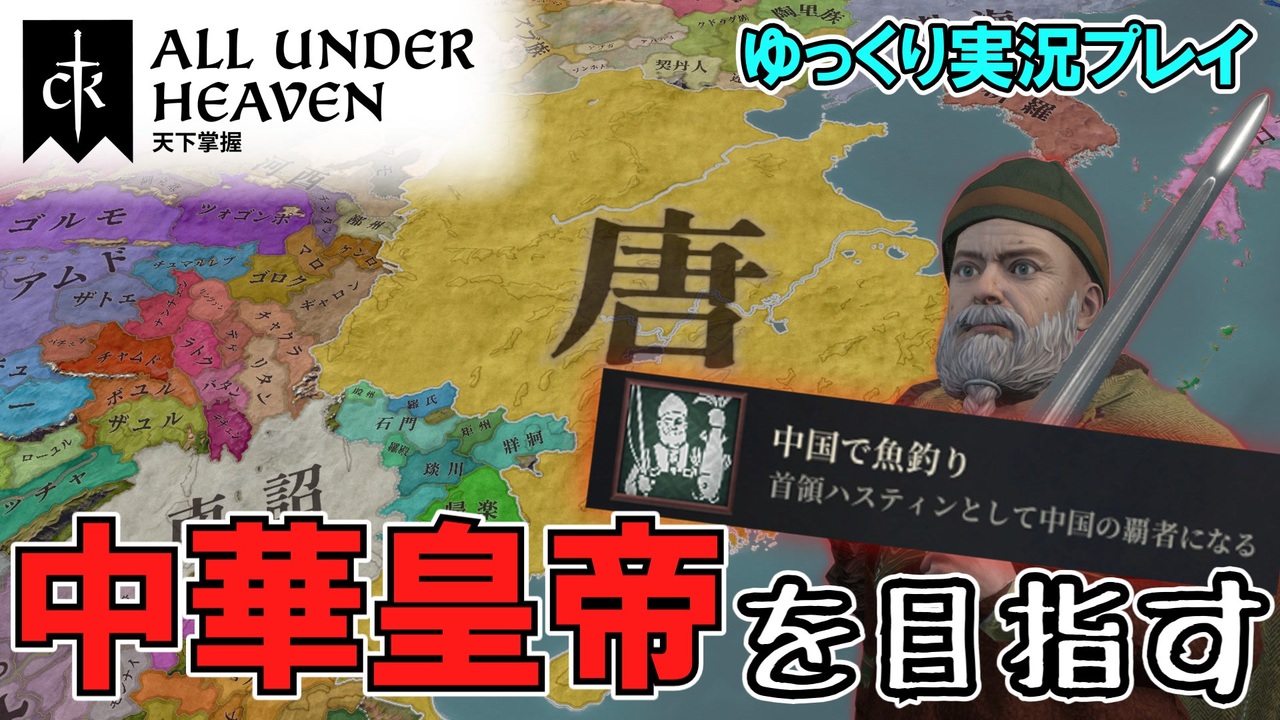CK3新DLC「All Under Heaven」のゆっくり実況プレイ動画となります<br>「中国で魚釣り」実績の解除を狙いましょう<br>目指すはハスティンによる中華皇帝即位!<br><br>CK3新DLC「All Under Heaven」は絶賛発売中! <a href="https://store.steampowered.com/app/3315530/Crusader_Kings_III_All_Under_Heaven/?l=japanese" target="_blank" rel="noopener nofollow">https://store.steampowered.com/app/3315530/Crusader_Kings_III_All_Under_Heaven/?l=japanese</a> <br><br>Youtube版<br><a href="https://youtu.be/inghgFNhjfs" target="_blank" rel="noopener nofollow">https://youtu.be/inghgFNhjfs</a><br><br>元となったライブ配信はこちら!<br><a href="https://studio.youtube.com/video/Uo2IaCKBUEc/edit" target="_blank" rel="noopener nofollow">https://studio.youtube.com/video/Uo2IaCKBUEc/edit</a><br><br>シナリオ:867年 冒険者たち<br>プレイキャラ:モンテギュ伯爵 首領ハスティン<br>Crusader Kings Ⅲ バージョン1.18.0.1<br>使用MOD:日本語改善(応急)、大和文化命名修正、Extended Outliner、Nameplates<br>難易度:ノーマル<br>PC環境:Intel(R) Core(TM) Ultra 7 265F (2.40 GHz) + GeForce RTX™ 5060<br>使用素材、資料等は動画末尾に記載<br><br>使用ソフト:ゆっくりMovieMaker4