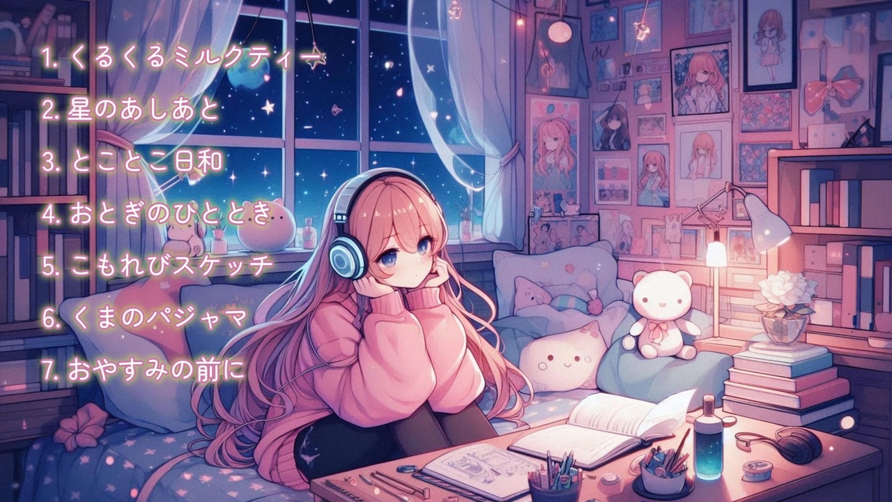 曲名<u>『くるくるミルクティー』『星のあしあと』『とことこ日和』『おとぎのひととき』『こもれびスケッチ』『くまのパジャマ』『おやすみの前に』</u><br><br>作業用BGM/勉強用BGM/配信用BGMなどでご使用ください♪<br>もし使用する場合はチャンネルへのリンクなど記載いただけるとみんなが幸せになります✨<br><br>チャンネルURL www.youtube.com/@赤いフォーク<br><br><br>0:00 くるくるミルクティー<br>02:26 星のあしあと<br>05:04 とことこ日和<br>07:35 おとぎのひととき<br>10:25 こもれびスケッチ<br>13:45 くまのパジャマ<br>15:56 おやすみの前に<br>18:55 2週目<br>37:51 3週目<br>56:46 4週目 <br><br><br>Youtube <a href="https://youtu.be/AkIAacS8LdA?si=9eANdE19UH7CG0rD" target="_blank" rel="noopener nofollow">https://youtu.be/AkIAacS8LdA?si=9eANdE19UH7CG0rD</a><br /><br><br>アレンジ再生リスト <a href="https://www.youtube.com/playlist?list=PLxB_yTCfARu5aBmwA-M2WwHsfUw9gd9Z-" target="_blank" rel="noopener nofollow">https://www.youtube.com/playlist?list=PLxB_yTCfARu5aBmwA-M2WwHsfUw9gd9Z-</a><br><br>オリジナル曲再生リスト <a href="https://youtube.com/playlist?list=PLxB_yTCfARu4beBAcyNgW1jhKUMmeh6l2" target="_blank" rel="noopener nofollow">https://youtube.com/playlist?list=PLxB_yTCfARu4beBAcyNgW1jhKUMmeh6l2</a><br><br>オリジナル曲再生リスト2 <a href="https://www.youtube.com/playlist?list=PLxB_yTCfARu7I-Fc-p72whb5MhzwoFtC0" target="_blank" rel="noopener nofollow">https://www.youtube.com/playlist?list=PLxB_yTCfARu7I-Fc-p72whb5MhzwoFtC0</a>