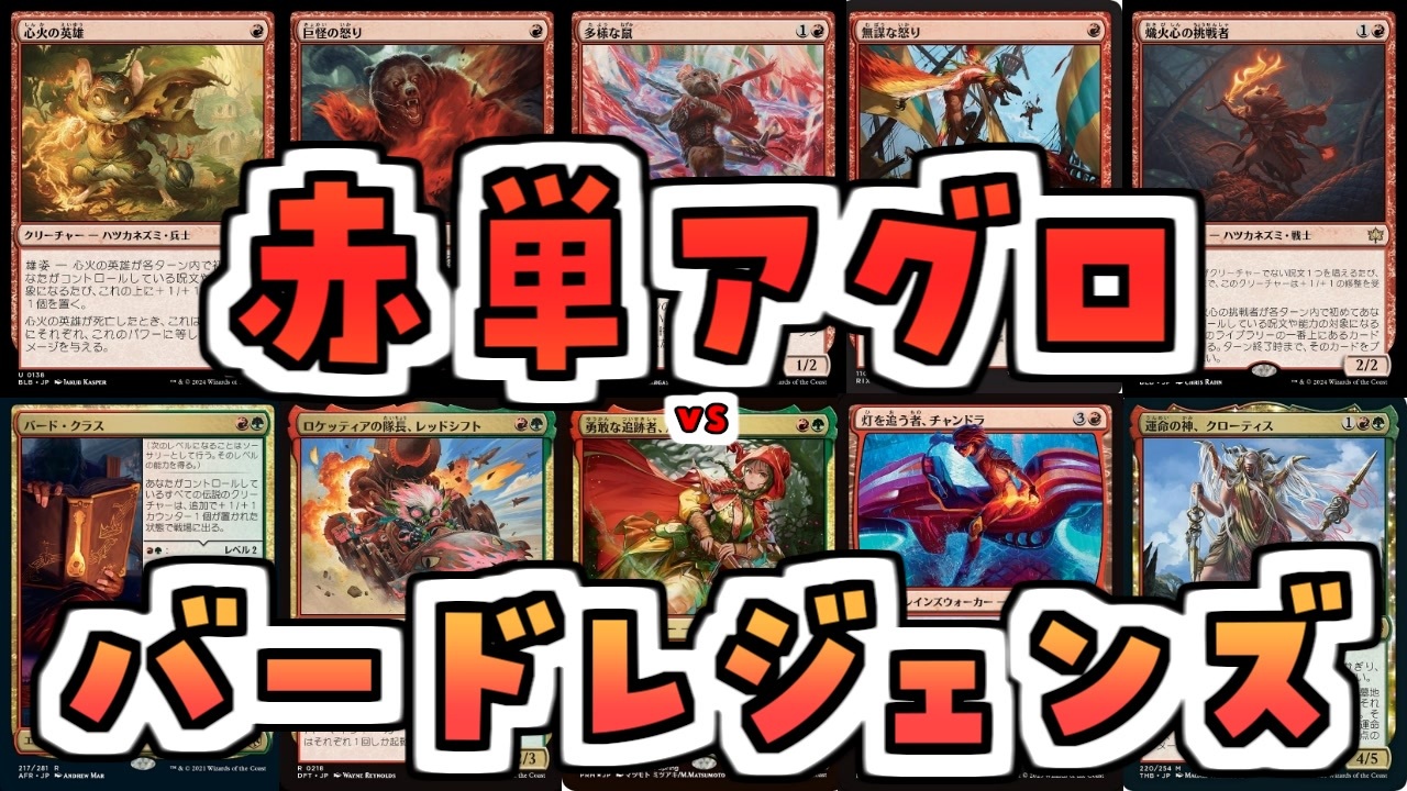 ①バードレジェンズvs赤単アグロ<br><br>♪ mirage / nm free music<br><a href="https://youtu.be/F3hL_WDp4gc?si=oXLRgORtx7gVn4pb" target="_blank" rel="noopener nofollow">https://youtu.be/F3hL_WDp4gc?si=oXLRgORtx7gVn4pb</a><br><br>♪ vertex / ISAo<br><a href="https://audiostock.jp/audio/92064" target="_blank" rel="noopener nofollow">https://audiostock.jp/audio/92064</a><br><br>♪ NORMAL BATTLE / フクロウ<br><a href="https://youtu.be/K6lTd7PEYSA" target="_blank" rel="noopener nofollow">https://youtu.be/K6lTd7PEYSA</a><br><br>♪ Fix and Aging / あおや<br><a href="https://youtu.be/8ycEb0q7P4o?si=GU-WOBOFMnfu951C" target="_blank" rel="noopener nofollow">https://youtu.be/8ycEb0q7P4o?si=GU-WOBOFMnfu951C</a><br><br><br><br><a href="https://www.nicovideo.jp/watch/sm45568816" class="watch">sm45568816</a>←前 / <a href="https://www.nicovideo.jp/mylist/40655906" target="_blank" rel="noopener">mylist/40655906</a> / 次→<a href="https://www.nicovideo.jp/watch/sm45611983" class="watch">sm45611983</a><br>