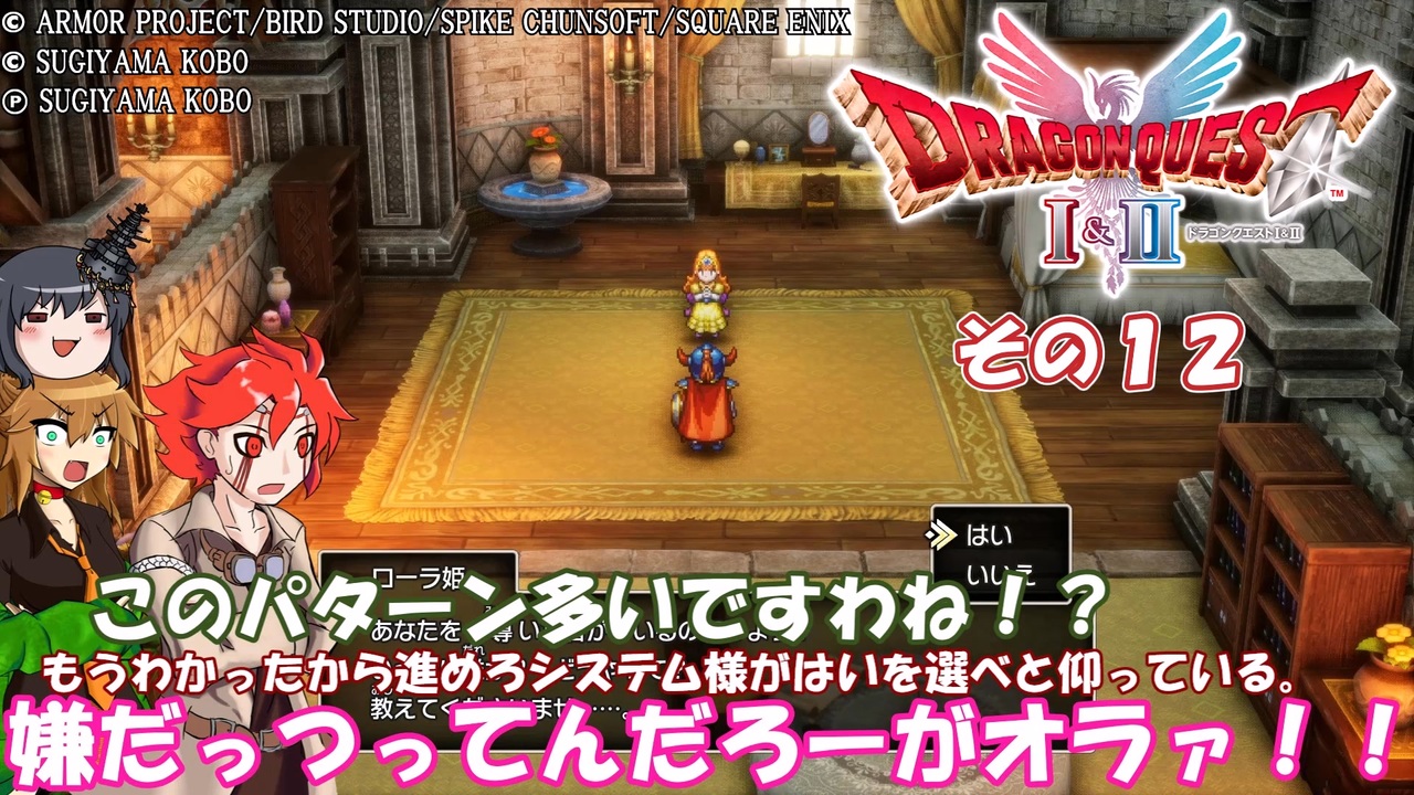 この動画はドラゴンクエストI&II<br>の実況プレイ動画となります。<br><br>難易度:いばらの道だぜ!<br><br>ネコ耳縛り?知らない子ですね・・・。<br><br><span style="font-size: 18px;"><strong>※シナリオに関わるネタバレあり。ご注意ください。</strong></span><br>(動画投稿ガイドラインより)<br><br>この動画で利用している株式会社スクウェア・エニックスを代表とする共同著作者が権利を所有する著作物及びスギヤマ工房有限会社が権利を所有する楽曲の転載・配布は禁止いたします。<br>© ARMOR PROJECT/BIRD STUDIO/SPIKE CHUNSOFT/SQUARE ENIX<br>© SUGIYAMA KOBO<br>℗ SUGIYAMA KOBO<br><br><a href="https://www.nicovideo.jp/watch/sm45590132" class="watch">sm45590132</a> ← 前 次→ <a href="https://www.nicovideo.jp/watch/sm45593370" class="watch">sm45593370</a><br>マイリスト → <a href="https://www.nicovideo.jp/mylist/77305494" target="_blank" rel="noopener">mylist/77305494</a><br>その1リスト → <a href="https://www.nicovideo.jp/mylist/58364125" target="_blank" rel="noopener">mylist/58364125</a><br><br>※使用Voice(及び配役)<br>VOICEVOX:春日部つむぎ(ネコ耳) 青山龍星(ドラムカン) 九州そら(山城) 雨晴はう(妖夢)<br>立ち絵:ネコ耳・ドラムカン(470/43様より頂きました)