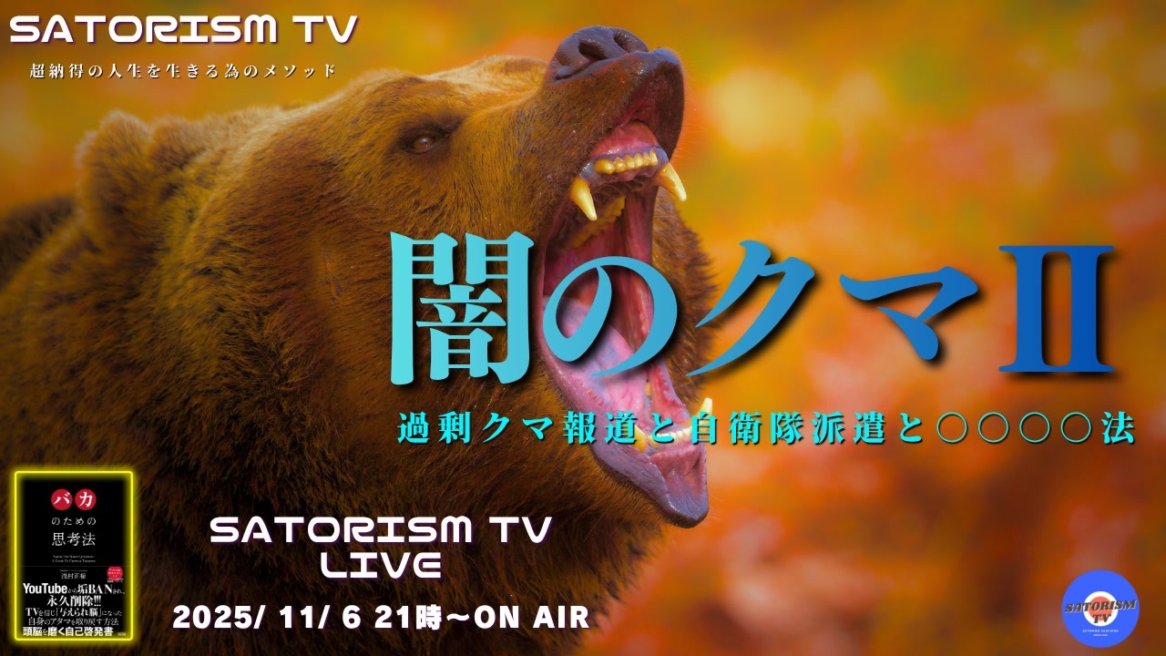 ■有料会員制 動画チャンネル「SATORISM GOLDEN TV」<br>特別動画配信中!<br>入会はコチラ <a href="https://nicochannel.jp/satorism-premium/welcome" target="_blank" rel="noopener nofollow">https://nicochannel.jp/satorism-premium/welcome</a><br><br>■有料会員様でログインできない等の不具合がある会員様へ<br>ドワンゴ苦情窓口はコチラ <a href="https://help.nicochannel.jp/hc/ja/requests/new?ticket_form_id=4414714831513" target="_blank" rel="noopener nofollow">https://help.nicochannel.jp/hc/ja/requests/new?ticket_form_id=4414714831513</a><br><br>■ANGLE磁気ネックレス 公式オンラインショップ<br><a href="https://c.affitch.com/?ref=PM9XTQJ6QGME" target="_blank" rel="noopener nofollow">https://c.affitch.com/?ref=PM9XTQJ6QGME</a><br><br>■合法アドレノクロム説明会をご希望の方 <a href="https://satorism-tv.com/home/contact/" target="_blank" rel="noopener nofollow">https://satorism-tv.com/home/contact/</a><br><br>■イベント情報<br>NEW!!2025年12月6日(土)サトリズム歴史考察『日本会議の緊急事態条項という闇』in北とぴあ<br>チケット予約はコチラ <a href="https://peatix.com/event/4624907" target="_blank" rel="noopener nofollow">https://peatix.com/event/4624907</a><br>忘年会の予約はコチラ <a href="https://peatix.com/event/4624908" target="_blank" rel="noopener nofollow">https://peatix.com/event/4624908</a><br>※合法アドレノクロム会員は入場無料!要予約<br><br>NEW!!2025年12月21日(日)サトリズム歴史考察『悪魔のシナゴーグ』in新大阪<br>チケット予約はコチラ <a href="https://peatix.com/event/4650856" target="_blank" rel="noopener nofollow">https://peatix.com/event/4650856</a><br>※合法アドレノクロム会員は入場無料!要予約<br><br>NEW!!2025年11月30日(日)サトリズム歴史考察『広島長崎の9.11』in鳥取<br>チケット予約はコチラ <a href="https://satorism1130.peatix.com/" target="_blank" rel="noopener nofollow">https://satorism1130.peatix.com/</a><br>※合法アドレノクロム会員は入場無料!要予約<br><br>NEW!!2025年11月29日(土) サトリズム歴史考察「悪魔のシナゴーグ」in博多<br>チケット予約はコチラ <a href="https://satorism1129hakata.peatix.com" target="_blank" rel="noopener nofollow">https://satorism1129hakata.peatix.com</a><br>※合法アドレノクロム会員は入場無料!要予約