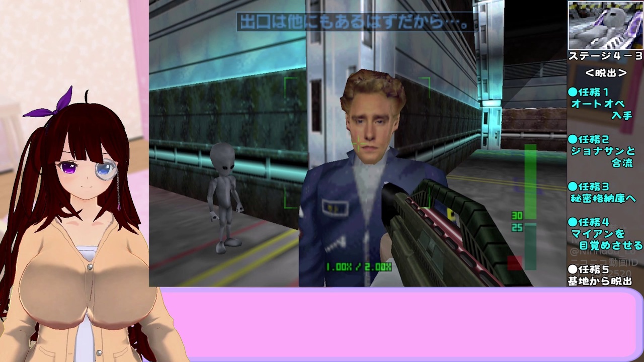 TAは人の心を捨てる <br><br>Part8→<a href="https://www.nicovideo.jp/watch/sm45592182" class="watch">sm45592182</a> < Part9ココ > Part10→まだ<br><br>パーフェクトダークマイリスト→<a href="https://www.nicovideo.jp/mylist/77400234" target="_blank" rel="noopener">mylist/77400234</a><br><br> <br>全RTAマイリスト→<a href="https://www.nicovideo.jp/mylist/69428960" target="_blank" rel="noopener">mylist/69428960</a> <br>普通実況等のPart1マイリスト→<a href="https://www.nicovideo.jp/mylist/73122841" target="_blank" rel="noopener">mylist/73122841</a><br>単発実況系マイリスト→<a href="https://www.nicovideo.jp/mylist/77398864" target="_blank" rel="noopener">mylist/77398864</a><br>収益報告系マイリスト→<a href="https://www.nicovideo.jp/mylist/77137493" target="_blank" rel="noopener">mylist/77137493</a><br>ーーーーーーーーーーーーーーーーーーーーーーーーーーー<br>◇ステージ背景:エリア51<脱出>◇<br><br>我々の「フレンド」たちが、ネバダ上空を飛行中に撃ち落とされてしまった。<br>残骸と「フレンド」たちは軍の秘密基地「エリア51」へ運ばれた。<br>同基地内にいる我々のスパイが、生存者の可能性を示す映像を電送してきた。<br>今回の任務はその生存者の救出だ。<br><br>◇キャリントン◇<br><br>質問があるのは分かっているぞ、ジョアンナ。<br>君がさきほど助けた小さな「フレンド」は、マイアンという種族のエイリアンだ。<br>撃ち落とされた飛行機に同乗していた別のマイアンたちは「地球大使」であった。<br>助かった彼は、そのボディーガードだったのだ。<br>・・・今はこのくらいで。ともかく急げ。<br><br>ーーーーーーーーーーーーーーーーーーーーーーーーーーー<br><br>Nintendo Switch Online + 追加パック<br>パーフェクトダーク<br>任天堂公式→<a href="https://www.nintendo.com/jp/software/feature/nintendo-classics/n-2720_j/index.html" target="_blank" rel="noopener nofollow">https://www.nintendo.com/jp/software/feature/nintendo-classics/n-2720_j/index.html</a><br><br>ーーーーーーーーーーーーーーーーーーーーーーーーーーー<br><br>カスタムオーダーメイド3D2(COM3D2)及び<br>バーチャルアバタースタジオを使用しています。<br>今回のゆっくり以外の使用ボイス<br>→A.IVoice2 結月ゆかり