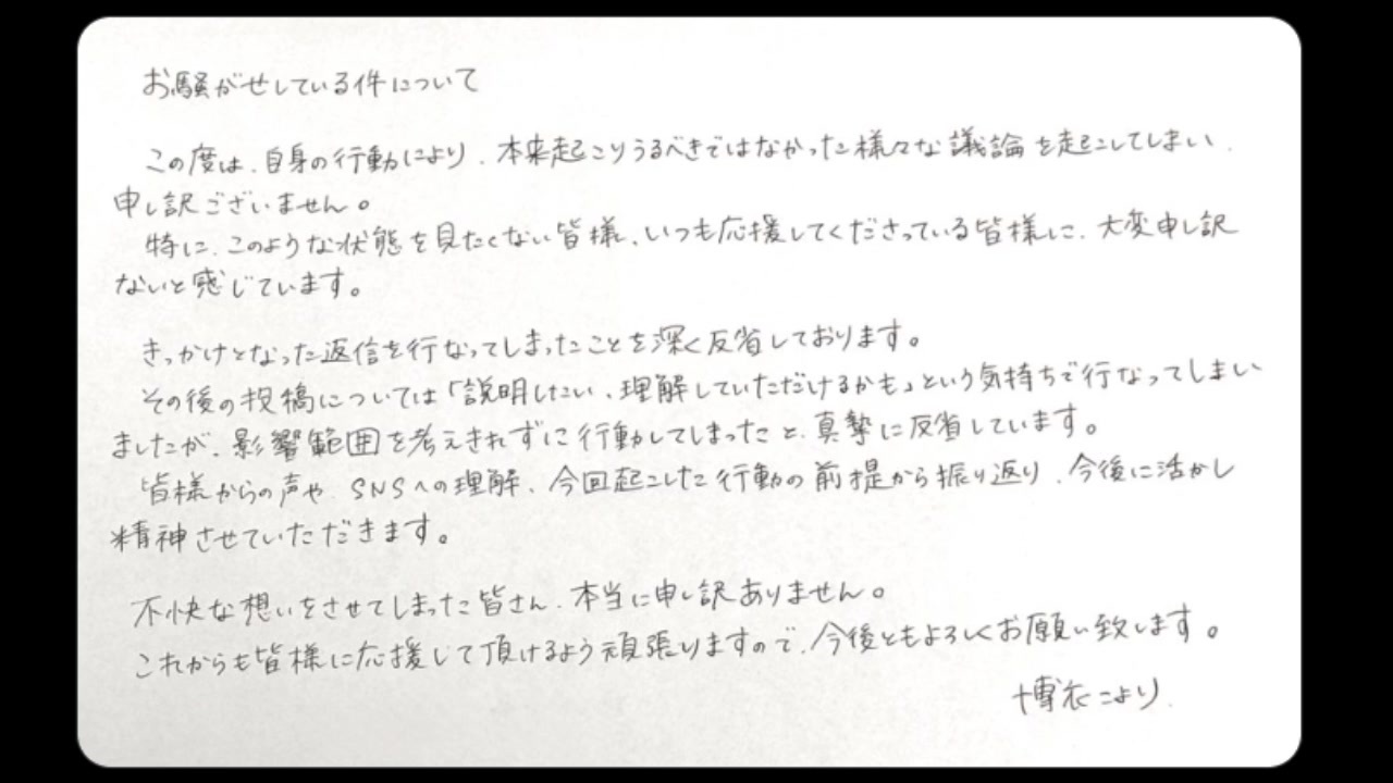 ホモと見る炎上して手書きの謝罪文を投稿してしまう人気vtuber