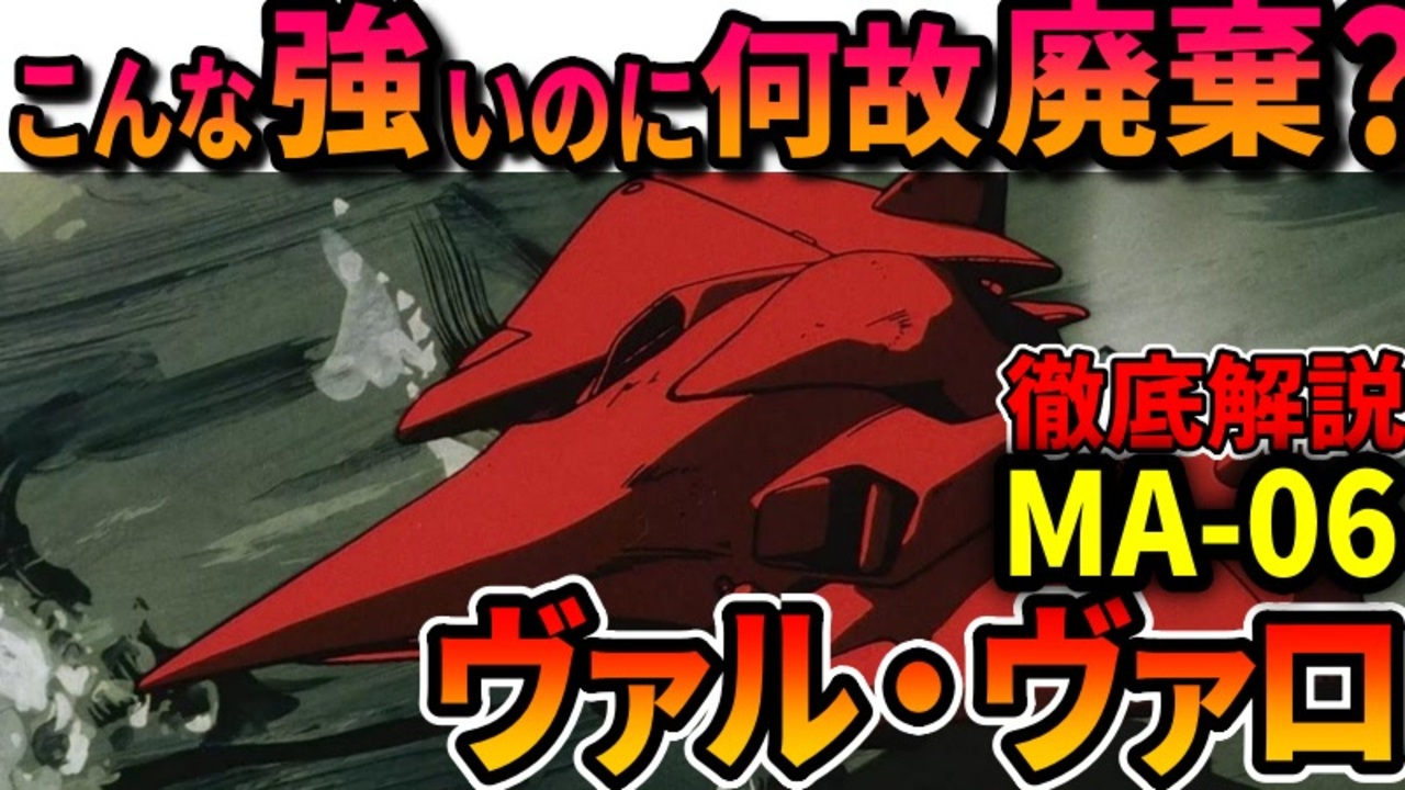 【こんなに強いのに何故廃棄?】ヴァル・ヴァロの性能、廃棄された本当の理由などを徹底解説【機動戦士ガンダム0083】<br><br>機動戦士ガンダム0083などに登場するMA、MA-06ヴァル・ヴァロを解説、考察していきます。 今回は解説と考察が同じくらいです。<br><br>ケリィさんが自信を持つくらいには強くて<br>しかしジオン公国からは廃棄されるくらいの性能と考えたら<br>なるほどなぁと思いました<br>戦争って勝った後も考えないといけないですしね<br><br>※ビームガンの位置は左右戦法✕ 左右前方◯<br> 動画を修正しました。<br> 大変失礼しましたm(_ _)m<br><br>※PC買い替えで結月ゆかりさんの一部設定を紛失したため、<br> ちょっと声の雰囲気が違うかもしれませんm(_ _)m<br><br>現在連載中の小説を見てくださる方はこちら:<br>死に戻り34回目、もう疲れたので私アイドルになります!<br>※初期コンセプトは死に戻ったガルマがシャアを救うにはどうしたら良いのか的な物語を全部女の子でやった感じです。<br>※ここが駄目、もっとこうしたらなどのアドバイスも大歓迎です<br><a href="https://kakuyomu.jp/works/16817330662598051943" target="_blank" rel="noopener nofollow">https://kakuyomu.jp/works/16817330662598051943</a><br><br>質問、などありましたらこちらにも<br><a href="https://twitter.com/@i4S0LHspdgzBTor" target="_blank" rel="noopener nofollow">https://twitter.com/@i4S0LHspdgzBTor</a><br><br>清見元康名義でカクヨム、小説家になろう、たいあっぷなどに投稿しています。<br>もし良ければ応援お願いしますm(_ _)m<br><a href="https://kakuyomu.jp/users/GariD/works" target="_blank" rel="noopener nofollow">https://kakuyomu.jp/users/GariD/works</a><br><br>以前の作品(短編シリアス):<br>転生した厄災の大魔女はやがて聖女と呼ばれる<br><a href="https://ncode.syosetu.com/n0827ha/" target="_blank" rel="noopener nofollow">https://ncode.syosetu.com/n0827ha/</a><br><br>A.I.VOICE:結月ゆかり<br>VOICEVOX:ずんだもん<br><br>使用させていただいたずんだもん:<br>ずんだもん mini Deluxe(立ち絵) ver1.2<br><a href="https://seiga.nicovideo.jp/seiga/im10794509" target="_blank" rel="noopener nofollow">https://seiga.nicovideo.jp/seiga/im10794509</a><br><br>いつも広告、コメントありがとうございます。<br>励みになりますm(_ _)m<br><br><br><a target="_blank" href="https://qa.nicovideo.jp/faq/show/19424?site_domain=default" style="font-size: 13px;color: #657586; text-decoration: underline; line-height: 1.4">この動画は投稿者によって修正されました</a>