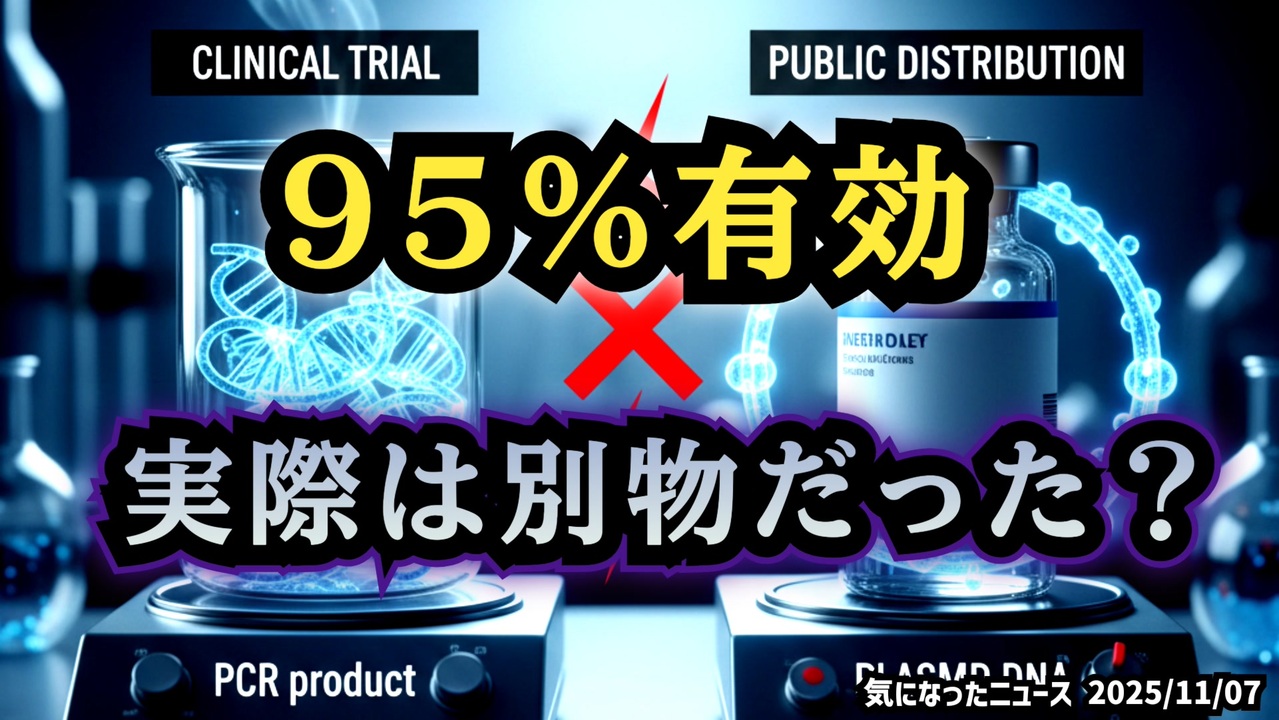 遅くなりました┏○))<br><br>◆ファイザー治験薬と市販ワクチン、実は“別物”だった?ゲノム専門家の衝撃証言<br><br>「治験と違う!?」<br>ファイザー製ワクチンの“中身”に隠された真実<br><br>あらすじ <br>世界中で接種されたファイザー製ワクチン。その「中身」が、治験で使われたものと異なる可能性を示す専門家の証言が注目を集めています。<br>ゲノミクス専門家ケビン・マッカーナン氏は、治験で使われたPCR産物が、実際に流通した製品では“プラスミドDNA”に置き換えられていたと指摘。しかも、治験には存在しなかったSV40配列や炎症を誘発しやすい遺伝子構造が加えられていたといいます。<br>報道されない「DNA汚染」疑惑の背景を紹介します。<br><br>◆今回の台本(詳細)<a href="https://keiichiro8140.hatenablog.com/entry/25110777333999" target="_blank" rel="noopener nofollow">https://keiichiro8140.hatenablog.com/entry/25110777333999</a><br><br>◆これまでの動画<a href="https://x.gd/sPXoJ◆もしも(BAN)の時のためのマイリンク集https://lit.link/K16_888" target="_blank" rel="noopener nofollow">https://x.gd/sPXoJ◆もしも(BAN)の時のためのマイリンク集https://lit.link/K16_888</a><br><br>ご覧いただきありがとうございます<br>m(_ _)m<br>気になったニュース 2025/11/07<br><br />著作権、肖像権に配慮して作成しております。<br><br>◆気になったニュースの台本!?<br>メモ代わりに作った台本をそのままあげてます<br><a href="https://keiichiro8140.hatenablog.com/." target="_blank" rel="noopener nofollow">https://keiichiro8140.hatenablog.com/.</a><br><br><br>ここからはシリーズ紹介<br><br><br>◆ ワクチン解毒・デトックス<br><a href="https://x.gd/fZweg" target="_blank" rel="noopener nofollow">https://x.gd/fZweg</a><br><br>◆ウイリアム・マキス博士のがん治療(イベルメクチン・フェンベンダゾール等)<br><a href="https://x.gd/AtFYS" target="_blank" rel="noopener nofollow">https://x.gd/AtFYS</a><br><br>◆予防接種健康被害救済制度<br><a href="https://x.gd/0xK9x" target="_blank" rel="noopener nofollow">https://x.gd/0xK9x</a><br><br>◆気になったニュース #1501~<br><br>◆ 【ショートver】気になったニュース<br><a href="https://x.gd/7MxXC" target="_blank" rel="noopener nofollow">https://x.gd/7MxXC</a><br><br>◆ 気になったニュース #1001~<br><a href="https://x.gd/Lp8gv" target="_blank" rel="noopener nofollow">https://x.gd/Lp8gv</a><br><br>◆ 気になったニュース #501~<br><a href="https://x.gd/EmbS4" target="_blank" rel="noopener nofollow">https://x.gd/EmbS4</a><br><br>◆ 気になったニュース #1~#500<br><a href="https://x.gd/uPhNb" target="_blank" rel="noopener nofollow">https://x.gd/uPhNb</a><br><br>◆ X(旧Twitter)・テレグラムで気になった情報<br><a href="https://x.gd/YG6FT" target="_blank" rel="noopener nofollow">https://x.gd/YG6FT</a><br><br>◆ 日比谷5万人パレードデ⚪生放送アーカイブ動画<br><a href="https://x.gd/3CHJv" target="_blank" rel="noopener nofollow">https://x.gd/3CHJv</a><br><br>◆日比谷5万人パレード⚪モのマイリスト作ってみました<br><a href="https://nico.ms/mylist/76828848?ref=sp_other" target="_blank" rel="noopener nofollow">https://nico.ms/mylist/76828848?ref=sp_other</a><br><br>◆3.30 令和の百姓⚪⚪<br><a href="https://www.nicovideo.jp/series/511791?ref=garage_share_other" target="_blank" rel="noopener nofollow">https://www.nicovideo.jp/series/511791?ref=garage_share_other</a><br><br>◆ 及川幸久さんの【XNEWS】シリーズ<br><a href="https://x.gd/3k78K" target="_blank" rel="noopener nofollow">https://x.gd/3k78K</a><br><br>◆これまでの動画<a href="https://x.gd/sPXoJ" target="_blank" rel="noopener nofollow">https://x.gd/sPXoJ</a><br><br>◆もしも(BAN)の時のためのマイリンク集<a href="https://lit.link/K-16_News44" target="_blank" rel="noopener nofollow">https://lit.link/K-16_News44</a><br><br>
