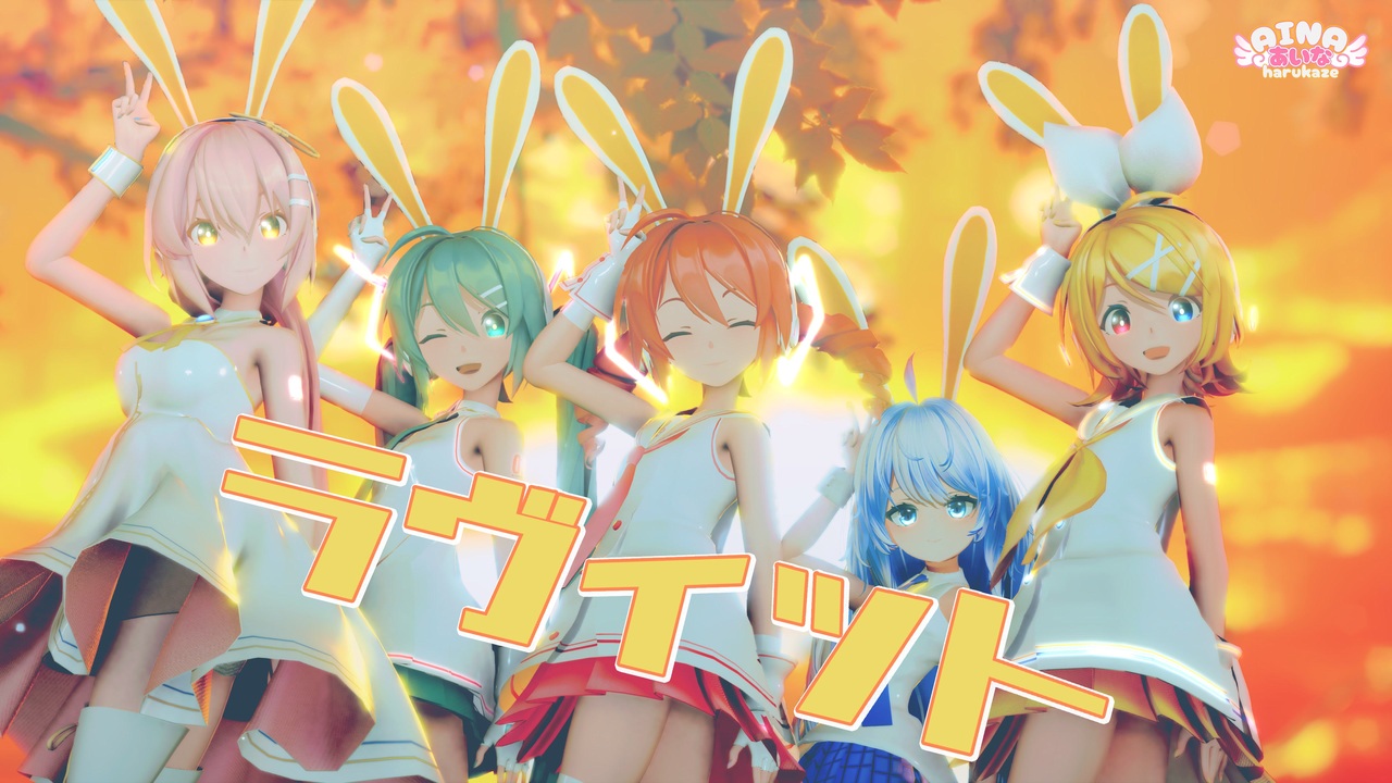 ☆2525再生達成~見て頂いた皆さんほんとにありがとうございます☆<br>今回は☆テトさん☆10/10のテトさんの日にアップ出来なかったので大遅刻ですけど作りましたー(^-^; <br>ウサ耳はやっぱり可愛いのです~♪ <br>モーションを調整、カメラも調整しながら少し改変しています~ <br>まだまだ色々ダメダメな所が多いのですけど、見て頂けたら嬉しいです~( 〃 ❛ᴗ❛ 〃 ) <br><br>youtue 4K動画はこちらへ↓<br><a href="https://www.youtube.com/@AIna-channel" target="_blank" rel="noopener nofollow">https://www.youtube.com/@AIna-channel</a><br><br>今回お借りしてる情報は↓へ♪ <br>楽曲:ピノキオピー - ラヴィット feat. 初音ミク 様/ <a href="https://www.nicovideo.jp/watch/sm37674814" class="watch">sm37674814</a><br>モーション・カメラ:Yumu様/ <a href="https://www.nicovideo.jp/watch/sm45474450" class="watch">sm45474450</a><br>振り付け元:兮白様/ BV13x4y1G7xe/<br>トレース元:盹盹様/ BV1VV4y1D7Eh/<br>(春風あいな-改変)<br>☆ツール☆ <br>MMD/MME/Premiere pro VMDサイジング:miu様<br>☆モデル☆ <br>Sour式重音テト:Sour & MozzarellaStix 様<br>Sour式初音ミク&鏡音リン&巡音ルカ:Sour暄様 <a href="https://www.nicovideo.jp/user/25576836" target="_blank" rel="noopener nofollow">https://www.nicovideo.jp/user/25576836</a> <br>あいなモデル:namekuji1337様:<a href="https://x.com/namekuji1337" target="_blank" rel="noopener nofollow">https://x.com/namekuji1337</a> <br>衣装:kumagoro(kumakichi)様/ <a href="https://seiga.nicovideo.jp/seiga/im5972488" target="_blank" rel="noopener">im5972488</a> <br>ウサ耳:パンプ二ン様/ <a href="https://seiga.nicovideo.jp/seiga/im4405899" target="_blank" rel="noopener">im4405899</a><br>☆ステージ☆ <br>むよむよ様: <a href="https://seiga.nicovideo.jp/seiga/im8768326" target="_blank" rel="noopener">im8768326</a><br>紅葉:hiro K様: <a href="https://seiga.nicovideo.jp/seiga/im6503390" target="_blank" rel="noopener">im6503390</a><br>落ち葉:ばんぞく様:<a href="https://seiga.nicovideo.jp/seiga/im11011345" target="_blank" rel="noopener">im11011345</a><br>パーティクル:蒼すずめ様: <a href="https://seiga.nicovideo.jp/seiga/im7027924" target="_blank" rel="noopener">im7027924</a><br>スカイドーム:怪獣対若大将P様: <a href="https://seiga.nicovideo.jp/seiga/im6370129" target="_blank" rel="noopener">im6370129</a><br>☆エフェクト☆<br>Rui様/そぼろ様/less様/おたもん様/針金P様/ましまし様 ikeno様/glam様/化身バレッタ様/ミーフォ茜様<br>Johndoo様/roz様/Sano_様/のりしお様/ビームマンP様/Caeru様/ame2様<br>更科様<br><br>お借りさせて頂いている皆様~いつもありがとうございます!<br>動画を見て頂いている皆様~まだまだ調整の甘いお勉強中のあいなですけど、いつもほんとうにありがとうございます!<br><br>追記☆<br>広告ありがとうございます!文字数制限で記載は↓へ♪<br><a href="https://x.com/AinaHarukaze" target="_blank" rel="noopener nofollow">https://x.com/AinaHarukaze</a><br>コメント・いいね・マイリス、ありがとうございます!<br>