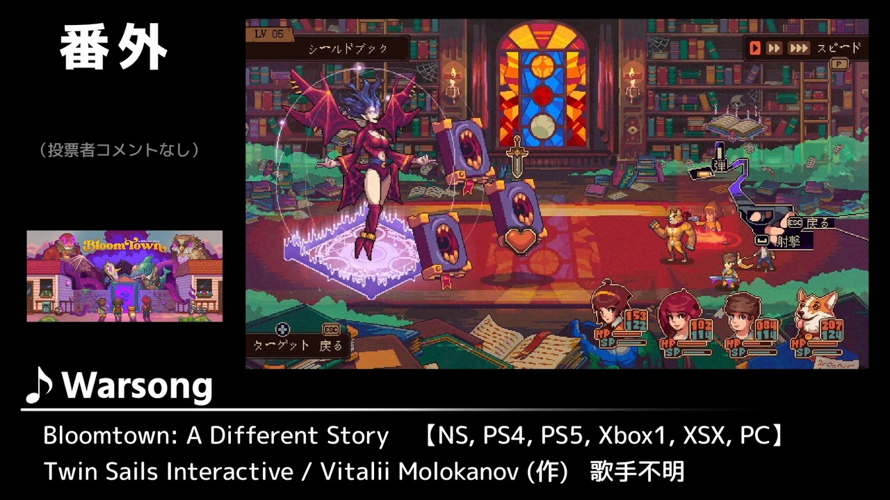 ①<a href="#" class="seekTime" data-seekTime="00:00" onclick="seekNicoPlayer('#00:00'); return false;">#00:00</a> ②<a href="#" class="seekTime" data-seekTime="03:39" onclick="seekNicoPlayer('#03:39'); return false;">#03:39</a> ③<a href="#" class="seekTime" data-seekTime="05:53" onclick="seekNicoPlayer('#05:53'); return false;">#05:53</a> ④<a href="#" class="seekTime" data-seekTime="08:56" onclick="seekNicoPlayer('#08:56'); return false;">#08:56</a> ⑤<a href="#" class="seekTime" data-seekTime="11:46" onclick="seekNicoPlayer('#11:46'); return false;">#11:46</a> ⑥<a href="#" class="seekTime" data-seekTime="13:59" onclick="seekNicoPlayer('#13:59'); return false;">#13:59</a> ⑦<a href="#" class="seekTime" data-seekTime="16:33" onclick="seekNicoPlayer('#16:33'); return false;">#16:33</a> ⑧<a href="#" class="seekTime" data-seekTime="18:26" onclick="seekNicoPlayer('#18:26'); return false;">#18:26</a> ⑨<a href="#" class="seekTime" data-seekTime="21:33" onclick="seekNicoPlayer('#21:33'); return false;">#21:33</a> ⑩<a href="#" class="seekTime" data-seekTime="26:32" onclick="seekNicoPlayer('#26:32'); return false;">#26:32</a> ⑪<a href="#" class="seekTime" data-seekTime="28:31" onclick="seekNicoPlayer('#28:31'); return false;">#28:31</a> ⑫<a href="#" class="seekTime" data-seekTime="32:24" onclick="seekNicoPlayer('#32:24'); return false;">#32:24</a> ⑬<a href="#" class="seekTime" data-seekTime="35:35" onclick="seekNicoPlayer('#35:35'); return false;">#35:35</a> ⑭<a href="#" class="seekTime" data-seekTime="37:59" onclick="seekNicoPlayer('#37:59'); return false;">#37:59</a> ⑮<a href="#" class="seekTime" data-seekTime="41:58" onclick="seekNicoPlayer('#41:58'); return false;">#41:58</a> ⑯<a href="#" class="seekTime" data-seekTime="45:14" onclick="seekNicoPlayer('#45:14'); return false;">#45:14</a> ⑰<a href="#" class="seekTime" data-seekTime="48:08" onclick="seekNicoPlayer('#48:08'); return false;">#48:08</a> ⑱<a href="#" class="seekTime" data-seekTime="50:18" onclick="seekNicoPlayer('#50:18'); return false;">#50:18</a> ⑲<a href="#" class="seekTime" data-seekTime="52:42" onclick="seekNicoPlayer('#52:42'); return false;">#52:42</a> ⑳<a href="#" class="seekTime" data-seekTime="56:03" onclick="seekNicoPlayer('#56:03'); return false;">#56:03</a> ㉑<a href="#" class="seekTime" data-seekTime="58:30" onclick="seekNicoPlayer('#58:30'); return false;">#58:30</a> ㉒<a href="#" class="seekTime" data-seekTime="62:44" onclick="seekNicoPlayer('#62:44'); return false;">#62:44</a> ㉓<a href="#" class="seekTime" data-seekTime="65:17" onclick="seekNicoPlayer('#65:17'); return false;">#65:17</a> <br>㉔ランク外の作品紹介コーナー <a href="#" class="seekTime" data-seekTime="68:54" onclick="seekNicoPlayer('#68:54'); return false;">#68:54</a> <br><br><br>番外編その2です!ランク外(1票だった曲)の中から23曲紹介しています。<br><strong>◆この動画で紹介しているゲームのソフト・サントラ購入先まとめはこちら!</strong><br><a href="https://sinkyoku.blogspot.com/2025/11/2024b2.html" target="_blank" rel="noopener nofollow">https://sinkyoku.blogspot.com/2025/11/2024b2.html</a><br><br><br>【<a href="https://www.nicovideo.jp/mylist/78058006" target="_blank" rel="noopener">mylist/78058006</a>】