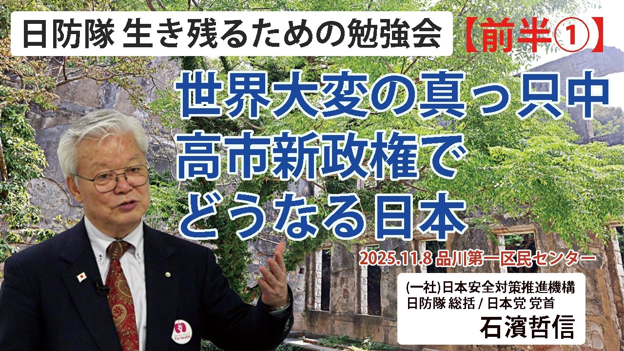 ※このイベントは日防隊主催ですが<br> 主催者様のご厚意により、当チャンネルで公開いたします。<br><br>※前半②と後半はニコニコチャンネルプラスの有料会員になっていただけると<br> ニコニコチャンネルプラスにてご覧いただけます。<br><br>※日防隊&日本党 全国ラリー始まります!<br> 詳しくは⇒ <a href="https://nippontou.jp/event/" target="_blank" rel="noopener nofollow">https://nippontou.jp/event/</a> をご覧ください。<br><br>※日本党仮入党はこちら<br><a href="https://nippontou.jp/party-registration/" target="_blank" rel="noopener nofollow">https://nippontou.jp/party-registration/</a><br><br>※日防隊への仮入隊はこちら<br><a href="https://nichibotai.com/?page_id=477" target="_blank" rel="noopener nofollow">https://nichibotai.com/?page_id=477</a><br><br>☆YouTubeメンバーシップを始めました。ご登録よろしくお願いいたします。<br><a href="https://www.youtube.com/channel/UCEMBoBatPnl--hCCE7OC3UQ/join" target="_blank" rel="noopener nofollow">https://www.youtube.com/channel/UCEMBoBatPnl--hCCE7OC3UQ/join</a><br><br>===============<br><br>ニコニコチャンネルプラスのご登録は以下のリンクから行っていただけます。<br><a href="https://nicochannel.jp/ishihama_tetsunobu/welcome" target="_blank" rel="noopener nofollow">https://nicochannel.jp/ishihama_tetsunobu/welcome</a><br>月額880円(税込)<br>毎月第2・第4火曜日の20時から生放送にてお送りいたします。<br><br>***************<br><br>第三次世界大戦(大惨事世界大変)に向かっている中どこよりも正確な情報を入手し、知っておくことはとても重要です。<br>石濱哲信も各地で勉強会を行ったり様々な場所で講話や演説を行っておりますが<br>この流れの早い激動の世の中では、なかなかスピーディーに情報をお伝えすることが困難でした。<br>そこで、この度有料にはなりますがニコニコチャンネルプラスにて「石濱哲信チャンネル」を始動することとなりました。<br><br>ニコニコチャンネルプラスのご登録は以下のリンクから行っていただけます。<br><a href="https://nicochannel.jp/ishihama_tetsunobu/welcome" target="_blank" rel="noopener nofollow">https://nicochannel.jp/ishihama_tetsunobu/welcome</a><br>月額880円(税込)<br>毎月第2・第4火曜日の20時から生放送にてお送りいたします。<br><br>ぜひご登録いただき、真の情報を手に入れて下さい。<br>そして皆さんとともに日本を守り抜きましょう。<br>何卒よろしくお願い申し上げます。<br><br>#石濱哲信<br>#世界大戦<br>#世界大変