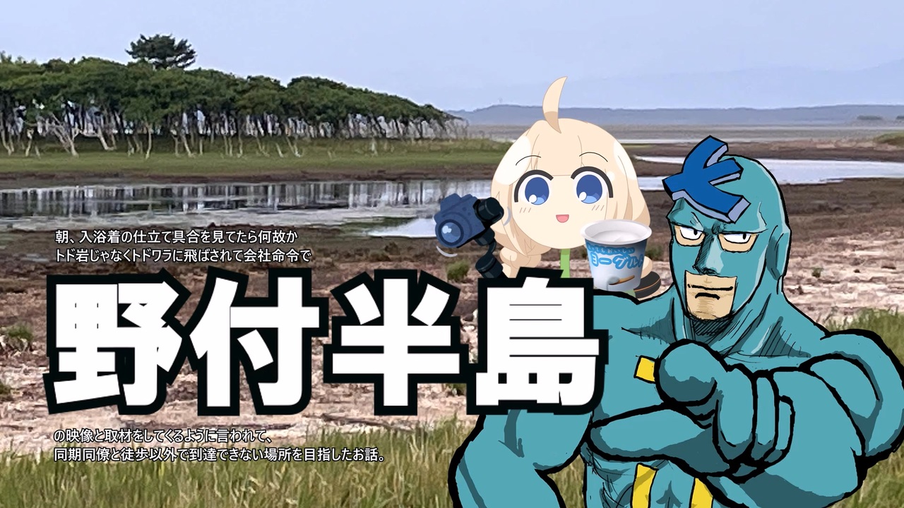 <a href="#" class="seekTime" data-seekTime="0:00" onclick="seekNicoPlayer('#0:00'); return false;">#0:00</a> 何故トドワラに?何で歩くのか?(導入の茶番)<br><a href="#" class="seekTime" data-seekTime="6:43" onclick="seekNicoPlayer('#6:43'); return false;">#6:43</a> 先端近くのアラハマ・ワンドまでの道のり<br><a href="#" class="seekTime" data-seekTime="18:17" onclick="seekNicoPlayer('#18:17'); return false;">#18:17</a> ご存じトドワラ<br><br>初めましての方は、初めまして。<br>今回はみすいぶ様主催の徒歩旅行祭に参加させていただきました。初の参加ですが、遠慮なく長尺の動画になってしまいました。それにつきましては、寛大なお心を持ってご容赦をお願い申し上げます。<br><br><strong>距離は11.6km</strong>(GPS情報が怪しいスマホナビでの測定、少なめに見積もっております)<br>距離的にはレギュレーションをなんとかクリア。<br>しかし「この世の果て」と称される場所故に、映像はあまり見ない不思議なものではないかと。人気の無さと人工的な音が全く聞こえてこない不思議な場所でありました。<br>こちらは訳有って2回ほど撮影してきました。サラッとですので歴史背景などは深く掘り下げておりません。あくまで現在の在りのままを撮ることを前提としました。<br><br>キャスティングの設定について・・・劇中には出してませんが、このような感じです。<br> フリモメン:観光系の会社に勤める主任。温泉巡りの取材がお仕事。青緑の入浴着(紳士服)を愛用。<br> あかり草 :フリモの同部署の同期。技術関係すべて担当。<br> 紲星あかり:新人記者でフリモの部下。<br> 結月ゆかり:社長。フリモ達の心穏やかな雇い主。<br> 結月ゆかり(老):同社の会長。決して逆らってはいけない。<br><br>動画内に出てくる半島の先端部は二つに分かれており、到達可能な方が「アラハマ・ワンド」。片や対岸の到達不可の部分が野付通行屋跡地になっており、ちらっと出てくる「幻の町キラク」は発掘作業においては根拠が出てこず、言い伝えのみと解釈されているようです。キラクの由来は「長く険しい船旅の途中、帰港した廓がとても気持ちを楽にさせた」から来ているそうですね。<br><br><br><br><br><br><a target="_blank" href="https://qa.nicovideo.jp/faq/show/19424?site_domain=default" style="font-size: 13px;color: #657586; text-decoration: underline; line-height: 1.4">この動画は投稿者によって修正されました</a>