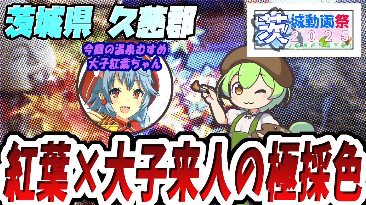 【撮影日と場所】<br>2024年11月24日<br>茨城県 大子町<br>【概要】本動画はsyageki様主催の動画投稿祭、茨城動画祭2025の参加作品となります<br><br>【紹介スポット・目次】<br><a href="#" class="seekTime" data-seekTime="0:00" onclick="seekNicoPlayer('#0:00'); return false;">#0:00</a> OP<br><a href="#" class="seekTime" data-seekTime="0:47" onclick="seekNicoPlayer('#0:47'); return false;">#0:47</a> 永源寺の紅葉<br><a href="#" class="seekTime" data-seekTime="2:46" onclick="seekNicoPlayer('#2:46'); return false;">#2:46</a> 袋田の滝① お土産屋街<br><a href="#" class="seekTime" data-seekTime="4:43" onclick="seekNicoPlayer('#4:43'); return false;">#4:43</a> 袋田の滝➁ 大子来人~滝<br><a href="#" class="seekTime" data-seekTime="8:15" onclick="seekNicoPlayer('#8:15'); return false;">#8:15</a> 袋田の滝③ 温泉むすめ 大子紅葉ちゃんグッズ収集①<br><a href="#" class="seekTime" data-seekTime="12:31" onclick="seekNicoPlayer('#12:31'); return false;">#12:31</a> 大子町 温泉むすめ 大子紅葉ちゃんグッズ収集➁<br><a href="#" class="seekTime" data-seekTime="14:19" onclick="seekNicoPlayer('#14:19'); return false;">#14:19</a> ED<br><br>Youtube高画質版:<a href="https://youtu.be/iHok5IEh5bQ" target="_blank" rel="noopener nofollow">https://youtu.be/iHok5IEh5bQ</a><br><br>この動画は以下の素材等のお世話になって作られています<br><br>編集ソフト <br>・ゆっくりMovieMaker4<br>・AviUtl <br>・DaVinci Resolve <br><br>ゆっくり立ち絵 <br>・nicotalk&キャラ素材配布所 <br><br>ずんだもん立ち絵 <br>・坂本アヒル様 <br>・ずんだおばけ様 <a href="https://www.nicovideo.jp/watch/sm40835451" target="_blank" rel="noopener nofollow">https://www.nicovideo.jp/watch/sm40835451</a> <br>・ずんだだらヶ様 <a href="https://www.youtube.com/watch?v=vxa3j5f8poA" target="_blank" rel="noopener nofollow">https://www.youtube.com/watch?v=vxa3j5f8poA</a><br><br>音声素材 <br>・ニコニコモンズ <br>・DOVA-SYNDROME <br>・効果音ラボ <br><br>フォント <br>・FONT FREE <br>・よく訓練された素材屋