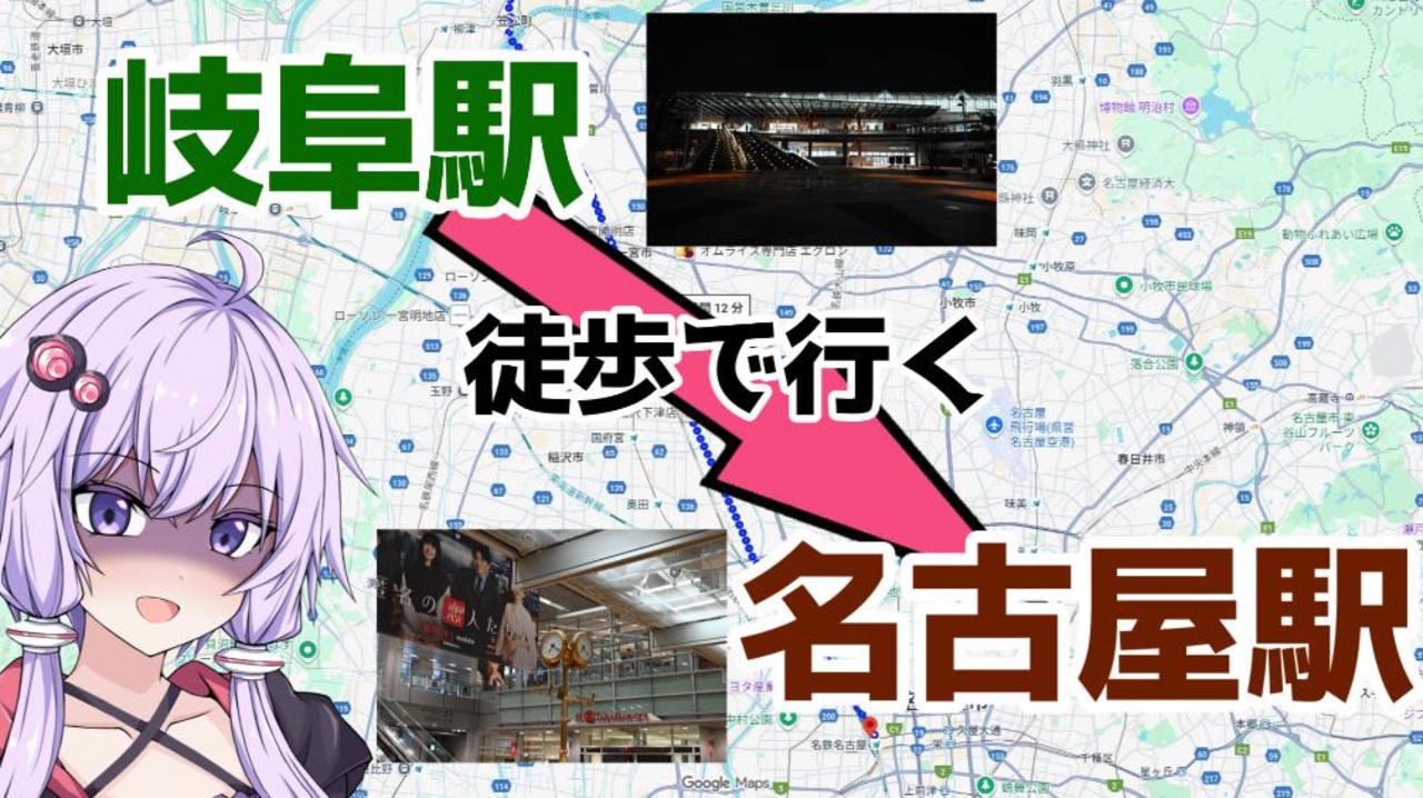<span style="color: #ff0000; font-size: 24px;">奇祭開催!</span><br>やってきました徒歩旅行祭2025!!!!!!!!!! <br>私はこの時を待っていたんだ!投稿したくてうずうずしてたよ!<br>一応前編後編関係なく見てもいいように作ったけど余裕があったら後編も見てね<br><br>《岐阜駅→名古屋駅間 走行距離31㎞》+《次回?㎞》 次回→<a href="https://www.nicovideo.jp/watch/sm45609835" class="watch">sm45609835</a><br><br>☆追走アドバイス☆<br>一宮→清州区間の夜移動は中途半端な数の街頭と、大量の車で目が慣れたと思ったら<br>車のライトで見えなくなるの繰り返しと歩道のガタガタが相まって<br>かなり危険なのでライトと反射材を装備しましょう!<br>ノリタケの森を経由しなければかなりのタイム短縮になります!<br><br><br>行ってきた場所…って実質ルート上のものは全部書けるので代表的なものを<br>岐阜県岐阜市 清水緑地<br>愛知県清州市 清洲城 <a href="https://www.city.kiyosu.aichi.jp/shisetsu_annai/kanko_shisetsu_sonota/kiyosujo.html" target="_blank" rel="noopener nofollow">https://www.city.kiyosu.aichi.jp/shisetsu_annai/kanko_shisetsu_sonota/kiyosujo.html</a><br>愛知県名古屋市西区 ノリタケの森 <a href="https://www.noritake.co.jp/mori/" target="_blank" rel="noopener nofollow">https://www.noritake.co.jp/mori/</a><br><br>A.I.VOICE 結月ゆかり<br>A.I.VOICE 紲星あかり 蕾<br>ガイノイドTalk 鳴花ヒメ<br>ガイノイドTalk 鳴花ミコト<br>VOICEPEAK フリモメン<br><br>本企画主催 みすいぶ 様 <a href="https://www.nicovideo.jp/user/40817995" target="_blank" rel="noopener">user/40817995</a><br><br><span style="color: #ffffff;">裏話<br>投稿数時間前に編集ミスに気が付いて青ざめながら直してました</span><br><br><a target="_blank" href="https://qa.nicovideo.jp/faq/show/19424?site_domain=default" style="font-size: 13px;color: #657586; text-decoration: underline; line-height: 1.4">この動画は投稿者によって修正されました</a>