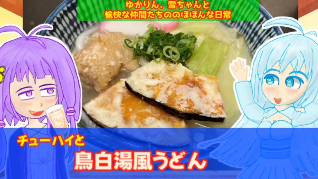 こんにちは、一人でも仙人です。<br><br>今回も、いつものように<br>「VOICEROIDキッチン」、「ボイ酒ロイド」のおバカ動画です<br>ここ最近、急に寒くなることが出てきたので<br>暖かいメニューでのお話です<br><br>いつものように、茶番多めのなんちゃって、おバカ料理動画なので<br>まったり見ていって下さいね<br>(^v^)<br><br>【注意?】場面やご覧になるデバイスによっては<br>話し声より、BGMが大きくなる可能性があります<br>原因はわからないのですが、ご承知おきください<br>(爆音とかいうわけではないので、そこは安心してくださいね)<br>m(_ _)m<br><br><br>前 → <a href="https://www.nicovideo.jp/watch/sm45539115" class="watch">sm45539115</a><br>次 → <a href="https://www.nicovideo.jp/watch/sm45685860" class="watch">sm45685860</a><br><br><br>今回も、調子に乗って25分ほどの中時間動画になっています。<br>お時間のある時、ご飯を食べながら、ボーっとしながら等<br>スキマ時間に「ながら試聴」してくださいな<br>(^^ゞ<br><br><br>「広告、フォロー、いいね!、コメントをしてくださったみなさま」<br>本当にありがとうございます!<br>この動画の視聴者さんは本当に暖かい人が多い!<br>よかったら、コメントを通じて仲良くして行って下さいね<br><br>また、うぽつ、おつなどの足跡コメントも増えてきているので嬉しい限りです<br>これは本当に動画作成のモチベーションに直結します<br>ありがとうございます!<br><br>動画の後半では、ご広告者さんのお名前を読み上げさせていただきますね!<br>みなさん、いつもありがとうございます!<br>p(^v^)q<br><br><br>それでは、今日も<br>おバカな、のほほん動画をお楽しみくださいねっ!<br><br />使用したツール、素材、音楽など<br><br>AVIUTL<br>FireAlpaca<br>PSDtoolKIT<br>Cakewalk by BandLab<br>Google gemini<br>A.I.VOICE2:結月ゆかり<br>VOICEVOX<br>(トーク、ソング):ずんだもん、WhiteCUL、四国めたん、<br> ちび式じい、後鬼、櫻歌ミコ<br> 青山龍星、中国うさぎ、波音リツ<br> 満別花丸、雨晴はう、小夜/sayo<br> 冥鳴ひまり<br><br>ニコニコモンズ 様<br>いらすとや 様<br><br>ポルゼンヌ小林 様<br>mozell 様<br>G2ーMIDI 様<br>Atelier Nonta 様<br>MOMIZizm MUSiC(もみじば) 様<br>中村イネ 様<br><br>*必ずしも、すべての動画で上記のツール全部を<br> 使っているわけではないので、<br> そこはご了承くださいませ m(_ _)m