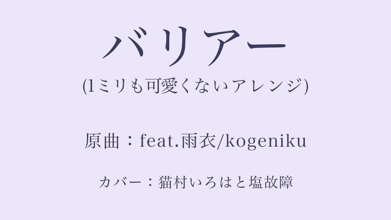 原曲:kogeniku様 <br>ご承諾いただきニコニコにアップさせていただきました。<br><br><span style="color: #ff0000; font-size: 24px;"><strong>とりあえず原曲めっちゃ良いから聴こう!!!<br>▶ </strong></span><span style="color: #4a86e8; font-size: 24px;"><strong><u><a href="https://www.nicovideo.jp/watch/sm45509530" class="watch">sm45509530</a></u></strong></span><span style="color: #ff0000; font-size: 24px;"><strong> ◀</strong></span><br><br><br>【余談】<br>可愛くできませんでした。<br>可愛さに寄せないのが自分的に最大のリスペk<br><br><br>▼本家様より歌詞転載させていただきます!▼<br><br>ボロボロの護心術<br>手に馴染んできたけど<br>欲張りな守り方<br>いつのまにか増えた <br>ホントに欲しいものだけ言って<br>わかりあえないプロセス <br>最優先の奪い合いしよう<br><br>器用な立ち位置わずかに劣等感<br>見えないフリとかいまさら無理でしょ<br>だって<br><br>君にバリアーすぐにはっちゃって <br>いつのまにか会話なくなって<br>嫌になるな 独り言<br>「また順番待ちか…」<br>きみに声が届かなくたって<br>音が鳴れば無敵なんだって<br>並列にはできない<br>今はまだまだ待機中 <br><br>どんなに景色がよくても<br>いつまでたってもヤドカリ<br>やぶるために被った殻に<br>間違って住み着いた<br>やっぱさ早起きだって<br>いきなり無理じゃん<br>誰にも迷惑かけないから<br>大目に見てよね<br><br>少しの背伸びでかなりの達成感<br>順番待ちとかそろそろいいでしょ?<br>そっか<br><br>そこにバリアー既になくなって<br>いつもよりも視界広がって<br>見たい顔がやけに近くって<br>競合する気持ちだけ<br>善し悪しどっちもあるな<br>君にだけやっぱまだ必要で<br>別に他意はないけどごめんね <br>腕重ねるしぐさで<br>起動予定のプログラム<br><br>自分を守るはずなのに<br>言いたいこと堰き止めてるとか<br>そういう冗談みたいなオチならいっそ<br>横並びで埋もれる前に<br>見えないふりをして<br>最優先の君への指示で<br>いますぐこっちを見て!<br><br>バリア無しじゃ不安だけど