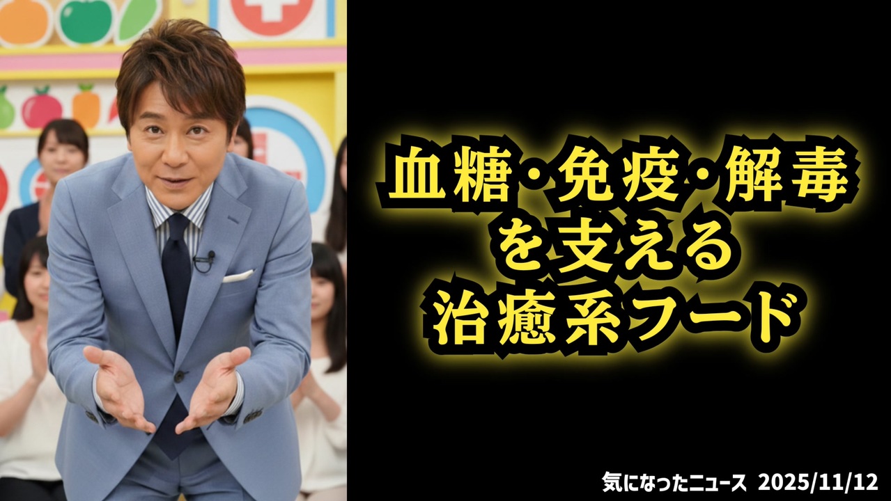 大変遅くなりました<br><br>【抗酸化大事です】◆血糖・免疫・解毒を支える治癒系フード<br><br> あらすじ<br>オクラ、紫キャベツ、カボチャの種、ゴーヤ、ブラジルナッツ、ニンニクの6つの食材が、血糖安定、抗酸化、代謝サポート、免疫強化にどう役立つかを解説します。各食材に含まれるペクチン、アントシアニン、マグネシウム、チャランチン、セレン、アリシンなどの成分が、体の細胞修復や有害物質の除去を助け、炎症や酸化ストレスを抑制するメカニズムも紹介。<br><br>◆今回の台本(詳細)<a href="https://keiichiro8140.hatenablog.com/entry/25111222111" target="_blank" rel="noopener nofollow">https://keiichiro8140.hatenablog.com/entry/25111222111</a><br><br>◆これまでの動画<a href="https://x.gd/sPXoJ" target="_blank" rel="noopener nofollow">https://x.gd/sPXoJ</a><br><br>◆もしも(BAN)の時のためのマイリンク集<a href="https://lit.link/K16_888" target="_blank" rel="noopener nofollow">https://lit.link/K16_888</a><br><br>ご覧いただきありがとうございます<br>m(_ _)m<br>気になったニュース 2025/11/12<br><br />著作権、肖像権に配慮して作成しております。<br><br>◆気になったニュースの台本!?<br>メモ代わりに作った台本をそのままあげてます<br><a href="https://keiichiro8140.hatenablog.com/." target="_blank" rel="noopener nofollow">https://keiichiro8140.hatenablog.com/.</a><br><br><br>ここからはシリーズ紹介<br><br><br>◆ ワクチン解毒・デトックス<br><a href="https://x.gd/fZweg" target="_blank" rel="noopener nofollow">https://x.gd/fZweg</a><br><br>◆ウイリアム・マキス博士のがん治療(イベルメクチン・フェンベンダゾール等)<br><a href="https://x.gd/AtFYS" target="_blank" rel="noopener nofollow">https://x.gd/AtFYS</a><br><br>◆予防接種健康被害救済制度<br><a href="https://x.gd/0xK9x" target="_blank" rel="noopener nofollow">https://x.gd/0xK9x</a><br><br>◆気になったニュース #1501~<br><br>◆ 【ショートver】気になったニュース<br><a href="https://x.gd/7MxXC" target="_blank" rel="noopener nofollow">https://x.gd/7MxXC</a><br><br>◆ 気になったニュース #1001~<br><a href="https://x.gd/Lp8gv" target="_blank" rel="noopener nofollow">https://x.gd/Lp8gv</a><br><br>◆ 気になったニュース #501~<br><a href="https://x.gd/EmbS4" target="_blank" rel="noopener nofollow">https://x.gd/EmbS4</a><br><br>◆ 気になったニュース #1~#500<br><a href="https://x.gd/uPhNb" target="_blank" rel="noopener nofollow">https://x.gd/uPhNb</a><br><br>◆ X(旧Twitter)・テレグラムで気になった情報<br><a href="https://x.gd/YG6FT" target="_blank" rel="noopener nofollow">https://x.gd/YG6FT</a><br><br>◆ 日比谷5万人パレードデ⚪生放送アーカイブ動画<br><a href="https://x.gd/3CHJv" target="_blank" rel="noopener nofollow">https://x.gd/3CHJv</a><br><br>◆日比谷5万人パレード⚪モのマイリスト作ってみました<br><a href="https://nico.ms/mylist/76828848?ref=sp_other" target="_blank" rel="noopener nofollow">https://nico.ms/mylist/76828848?ref=sp_other</a><br><br>◆3.30 令和の百姓⚪⚪<br><a href="https://www.nicovideo.jp/series/511791?ref=garage_share_other" target="_blank" rel="noopener nofollow">https://www.nicovideo.jp/series/511791?ref=garage_share_other</a><br><br>◆ 及川幸久さんの【XNEWS】シリーズ<br><a href="https://x.gd/3k78K" target="_blank" rel="noopener nofollow">https://x.gd/3k78K</a><br><br>◆これまでの動画<a href="https://x.gd/sPXoJ" target="_blank" rel="noopener nofollow">https://x.gd/sPXoJ</a><br><br>◆もしも(BAN)の時のためのマイリンク集<a href="https://lit.link/K-16_News44" target="_blank" rel="noopener nofollow">https://lit.link/K-16_News44</a><br><br>